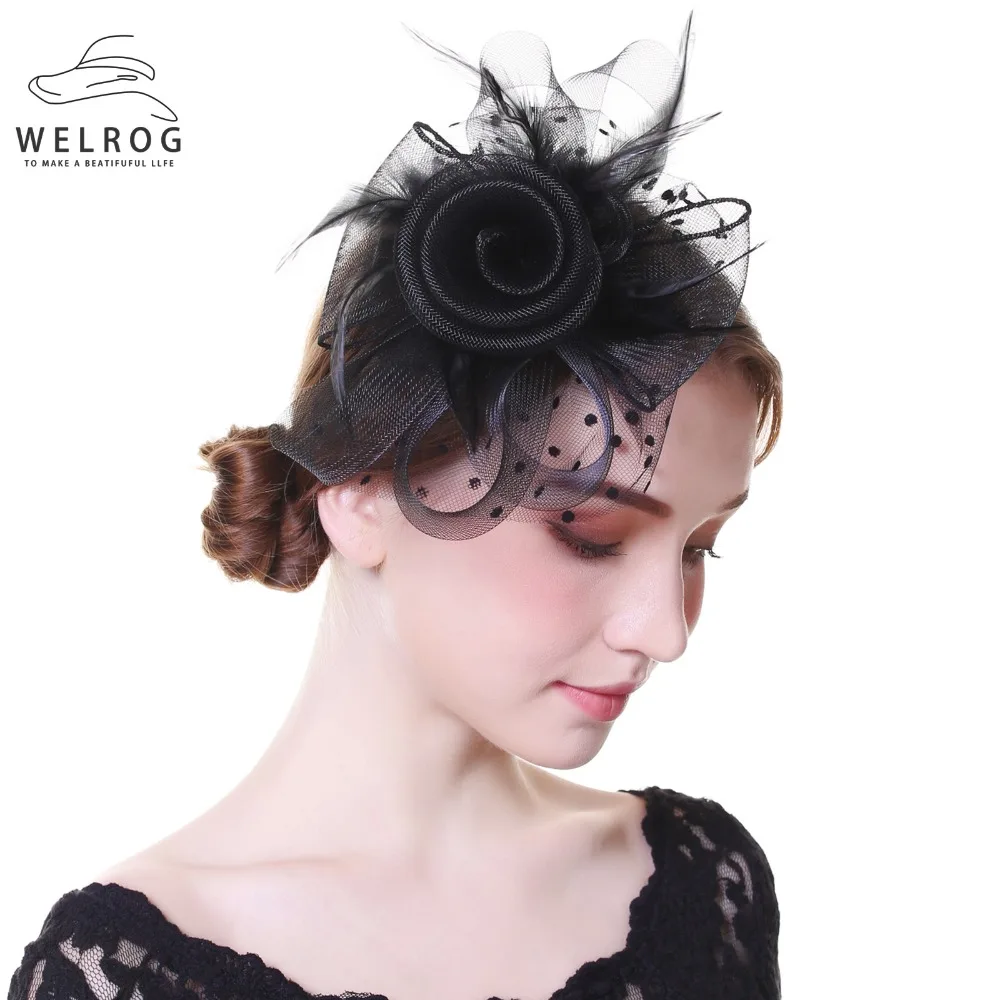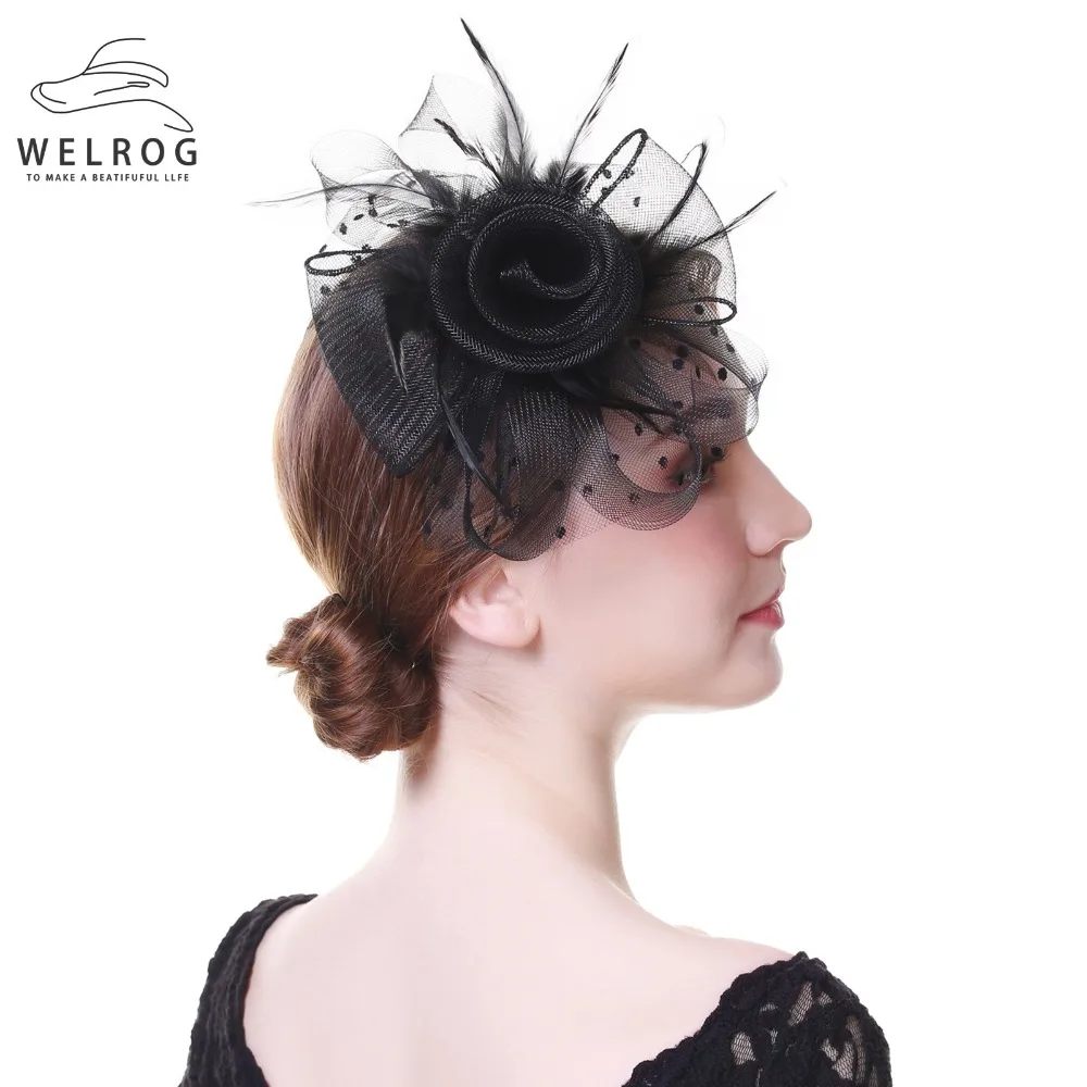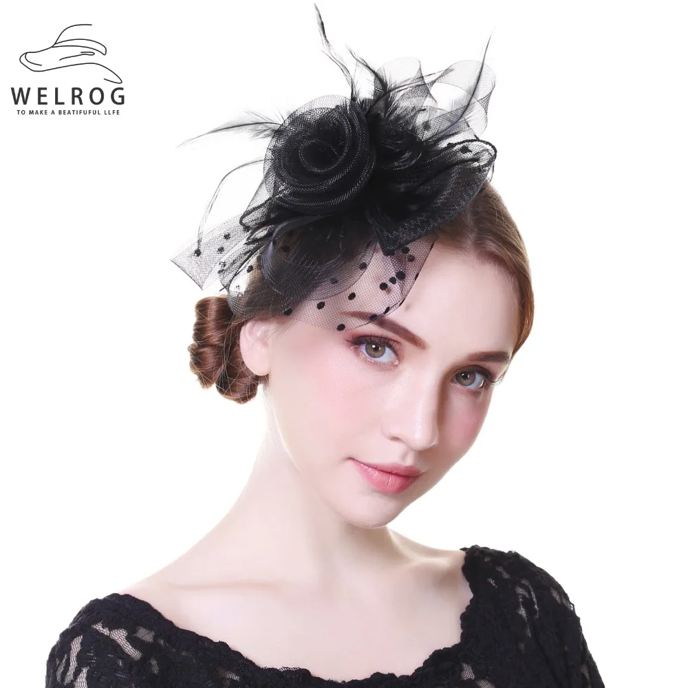 Женская Вуалетка WELROG, королевская Вуалетка для свадебных гонок Sinamay, Коктейльная Вуалетка, Женская Вуалетка, сетчатый, с перьями, шляпа для вечеринок, фетровая шляпа