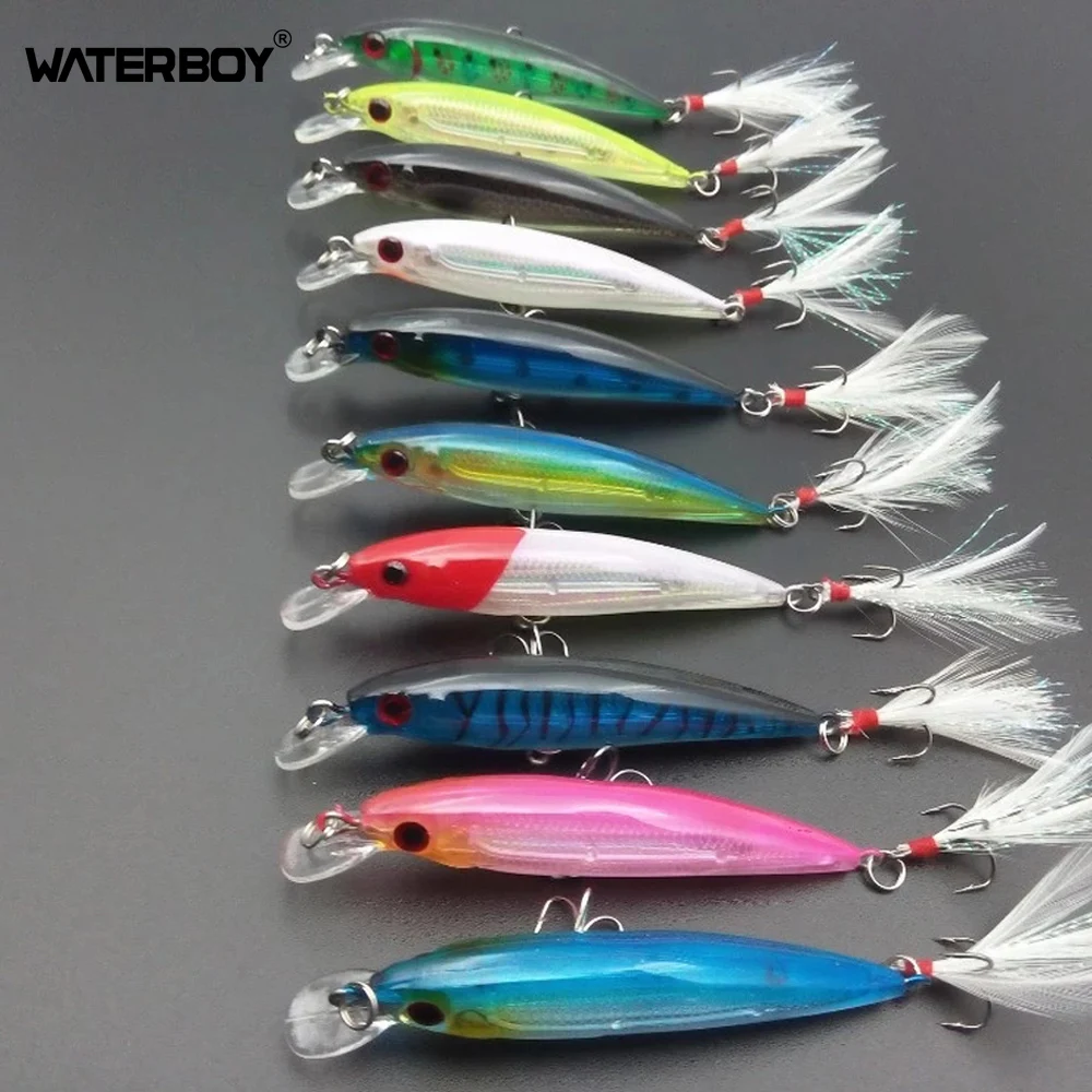 WATERBOY 10 шт блесна рыболовная приманка для плавания твердая приманка 9 см 8 г искусственная пластиковая перо-воблер приманка, рыболовные снасти