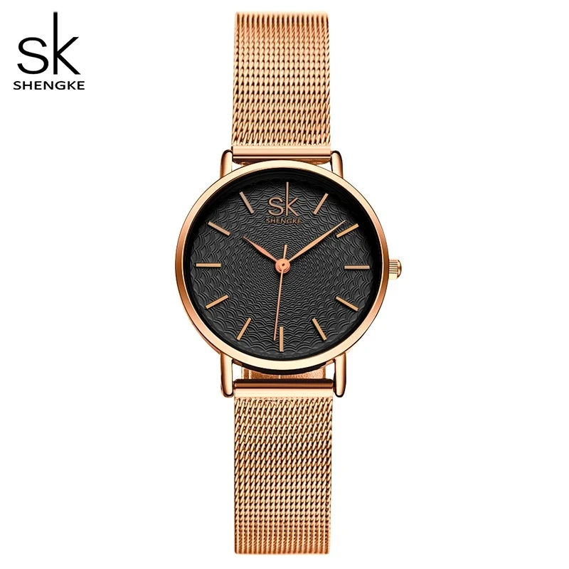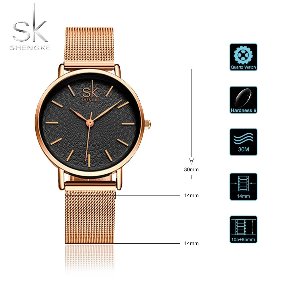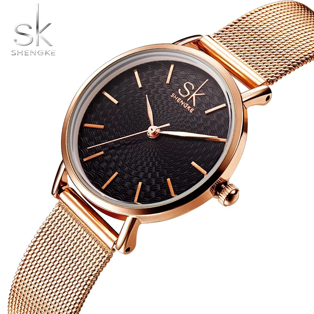 SHENGKE, новые модные брендовые женские наручные часы, супертонкие часы из нержавеющей стали с розовой золотой сеткой, женские часы, женские кварцевые часы