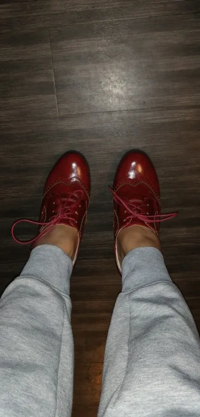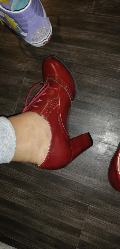 Они больше, чем указано. Я купил 42, что соответствует 26 см стоя, и у меня остались два номера. Я всегда покупаю 40 испанский для 26 см. Разочарование. Я надел на них толстый шаблон, и они все еще бегут свободно. Очень длинные кружева и не одного цвета, а фиолетового цвета.