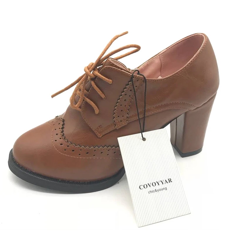 COVOYYAR 2022 винтажные женские туфли на шнуровке оксфорды с вырезами на массивном каблуке лакированная кожа высокий каблук женские ботильоны WHH132