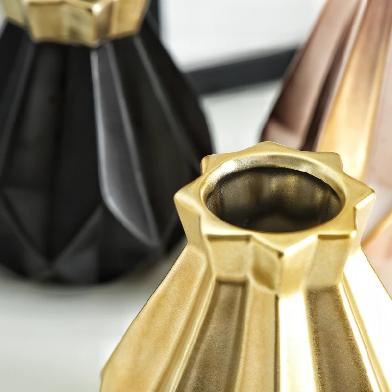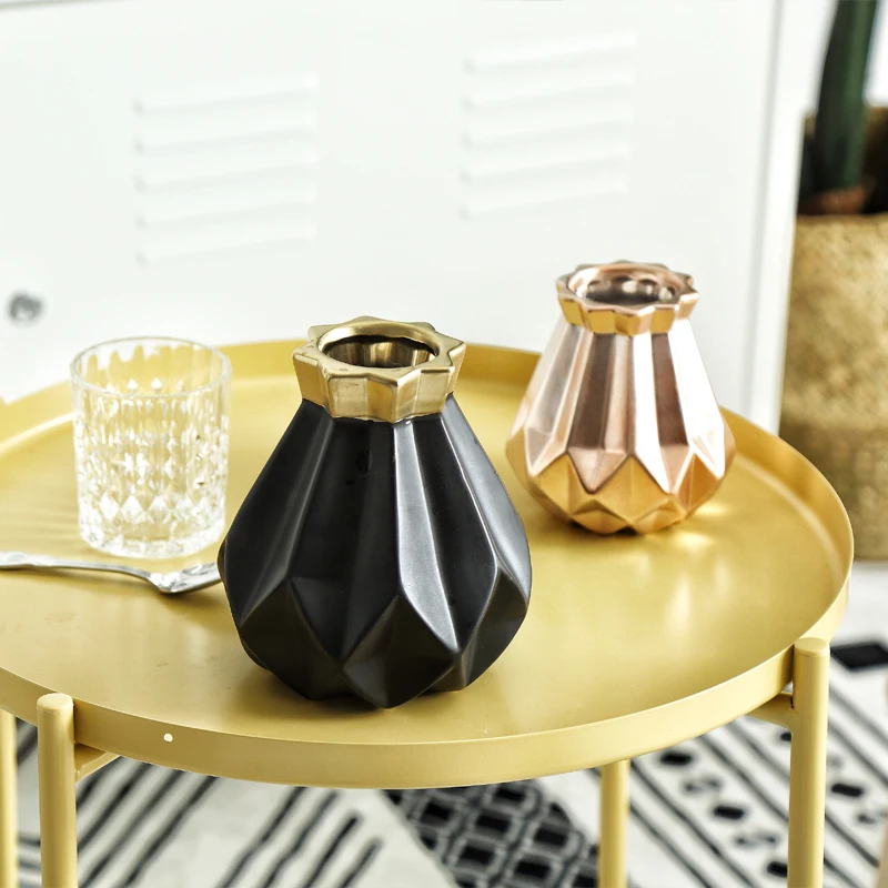 Золотаячернаярозовая ваза для цветов, керамическая ваза для домашнего декора, цветочные горшки, горшки для цветов