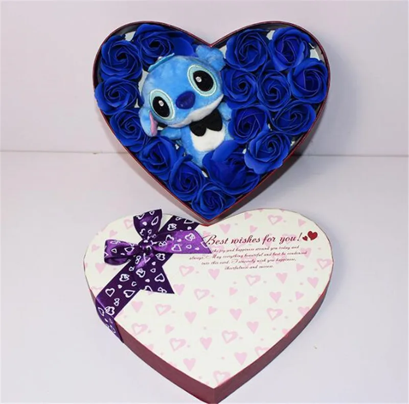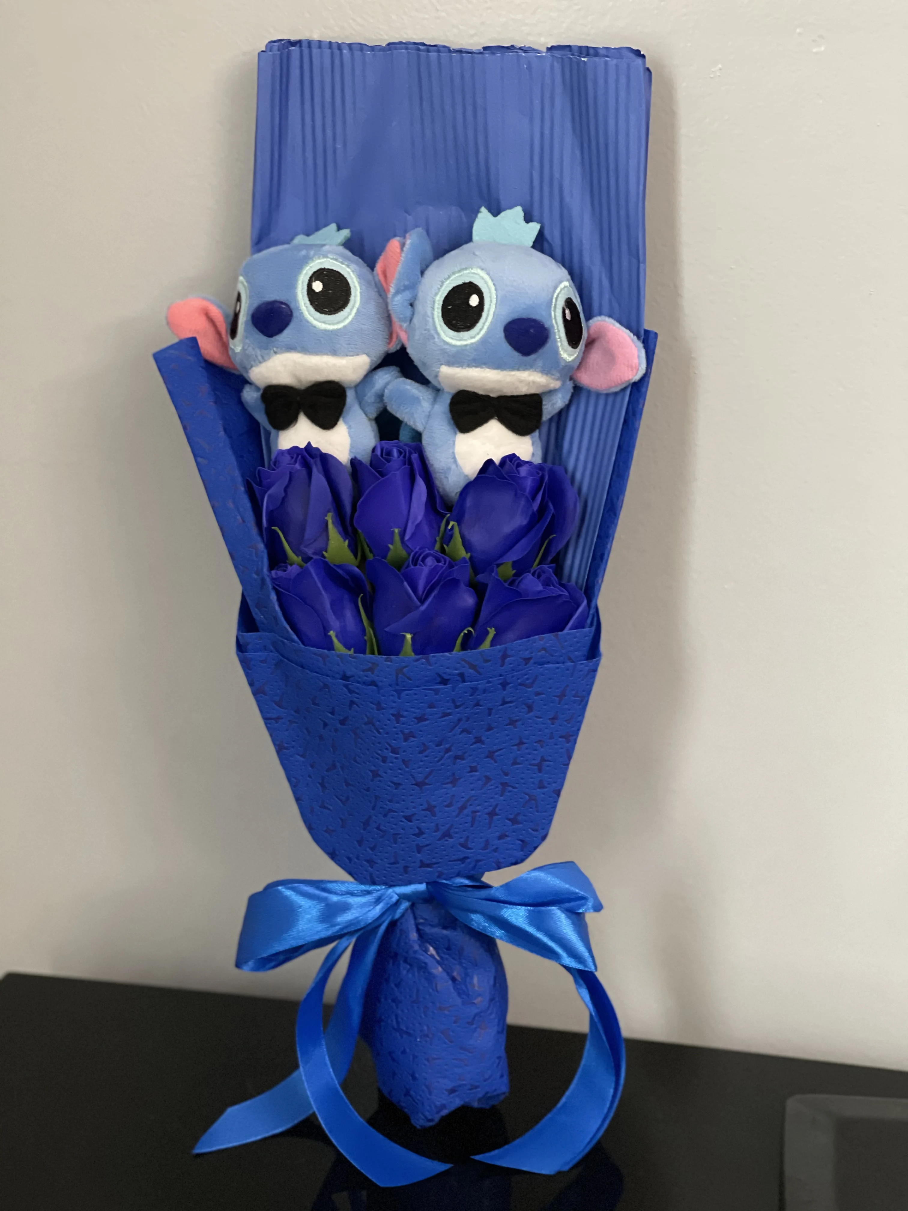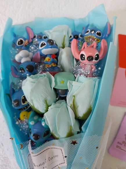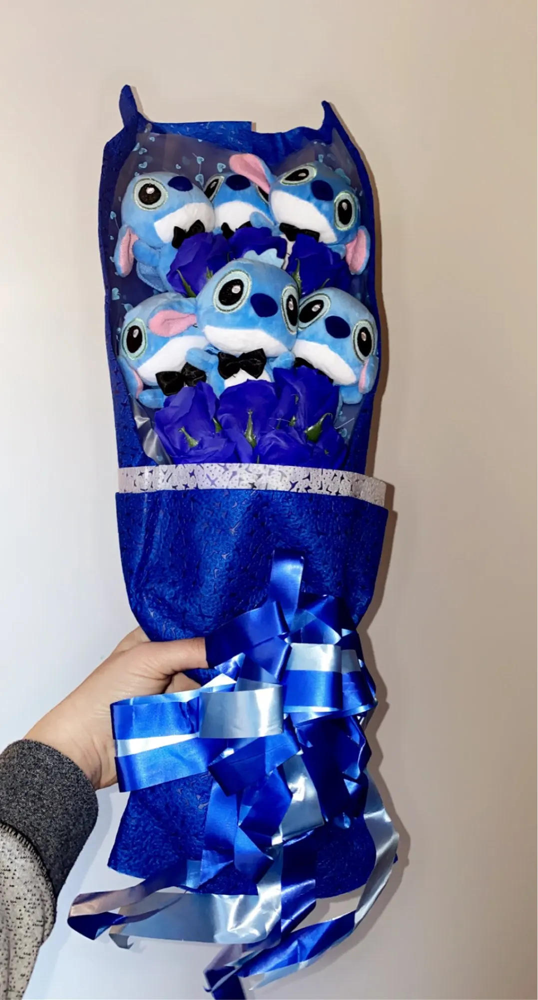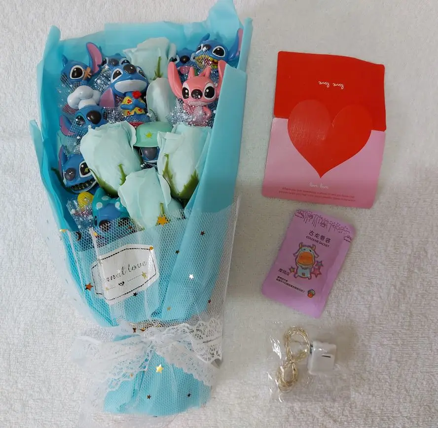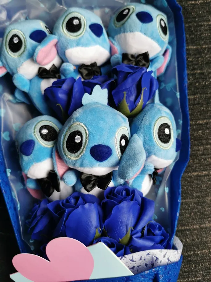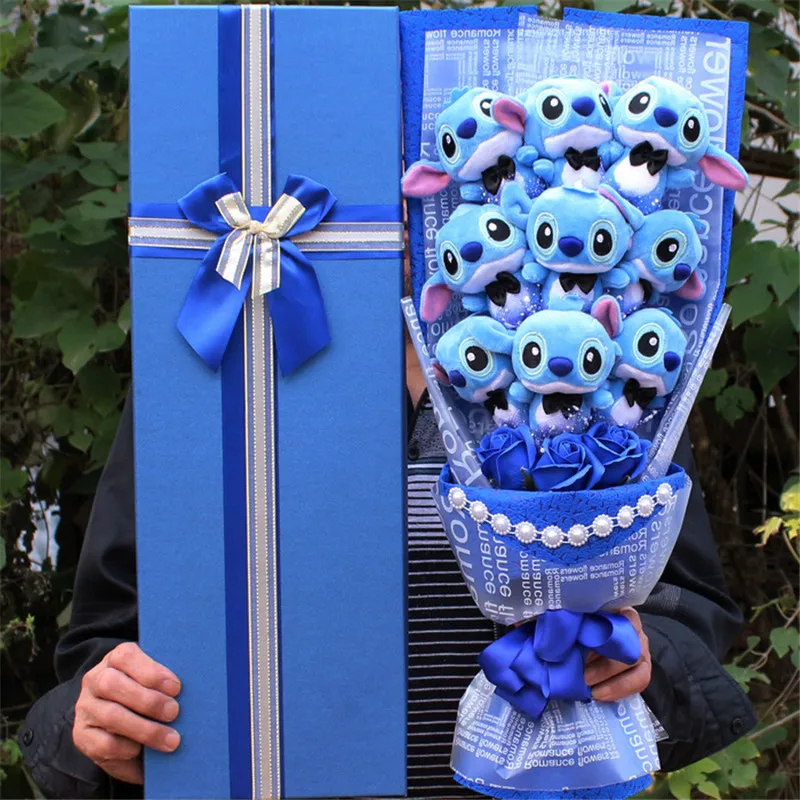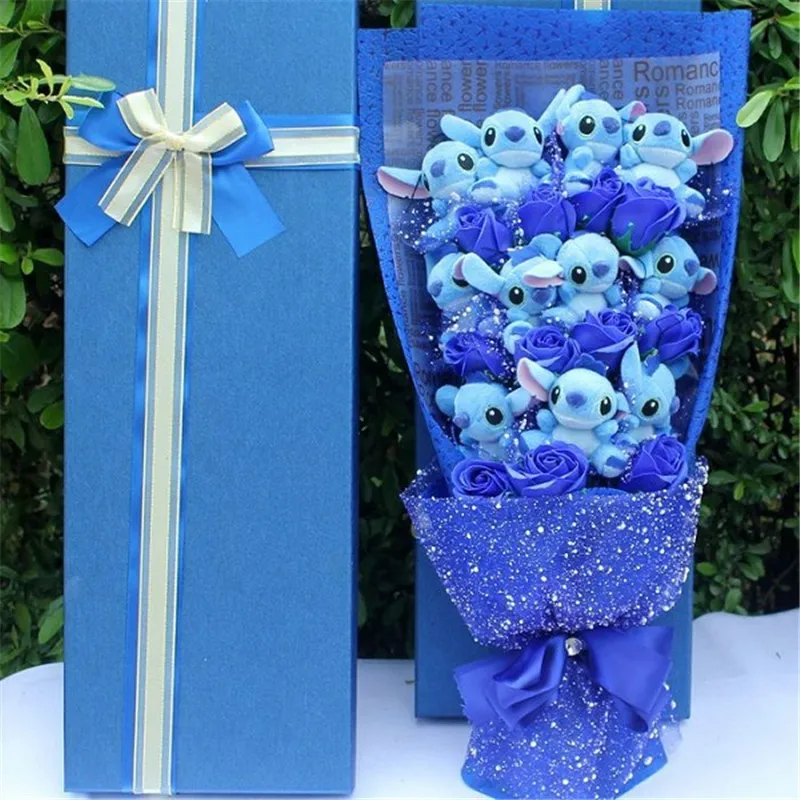 Мультфильм Лило Стич Дораэмон плюшевые куклы игрушки милый Лило Стич аниме плюшевый букет с искусственный цветок для свадьбы Вечерние подарок без коробки