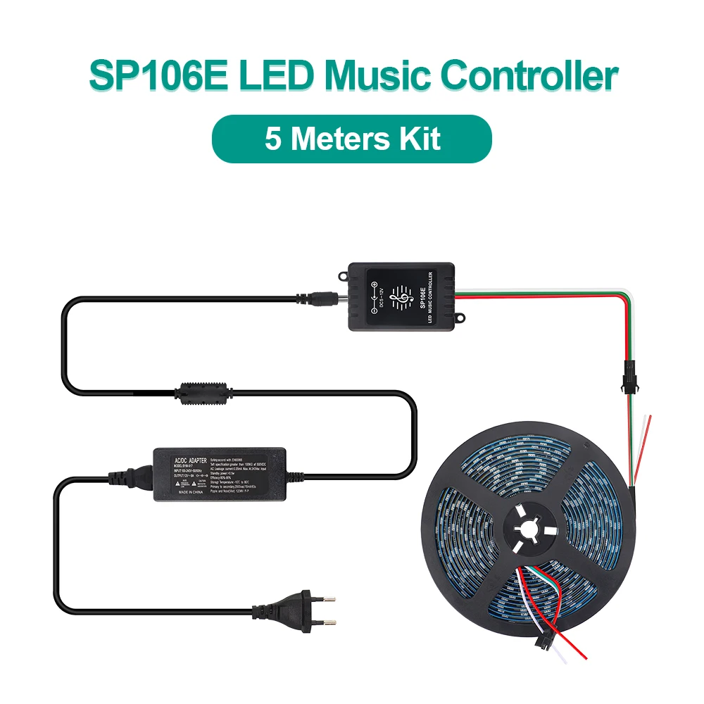 Цифровая светодиодная лента WS2811 12 В, 30 светодиодов60 светодиодов, набор RGB светильник полосок с музыкальным контроллером и адаптером питания, 5 м 10 м