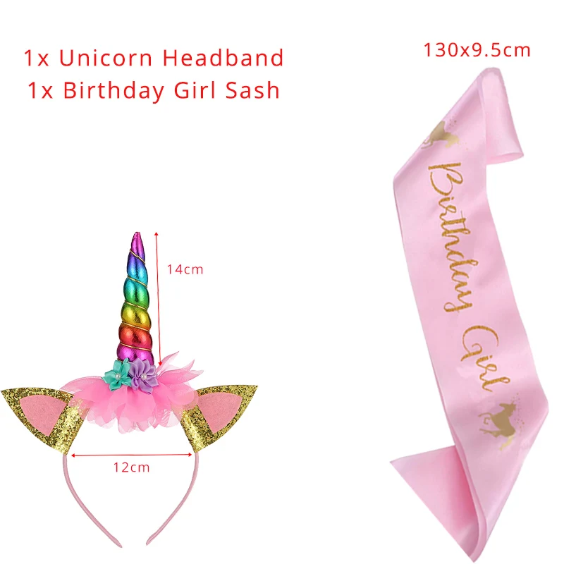 WEIGAO Набор с единорогом на день рождения для девочек, золотой блеск, повязка на голову с единорогом и розовый атласный пояс для девочки, подарок на день рождения с единорогом на вечеринку