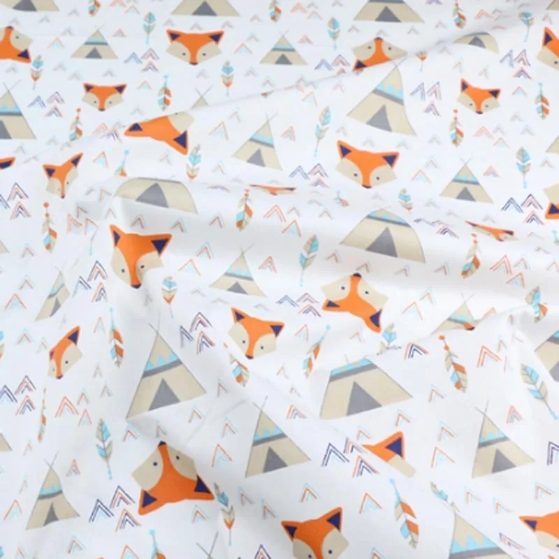 160 см * 50 см хлопковая ткань мультфильм белый серый палатка умная лиса геометрическая стрелка ткань для DIY кроватки постельные принадлежности платье домашний декор ручной работы