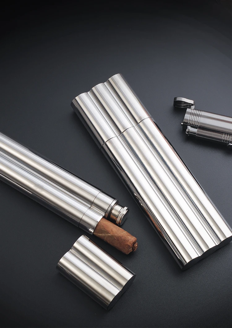 Новинка 1 шт. 2 в 1 чехол для сигар из нержавеющей стали Военный походный держатель для сигар с однойдвумя трубками с фланцевым винным бокалом для сигар хьюмидор