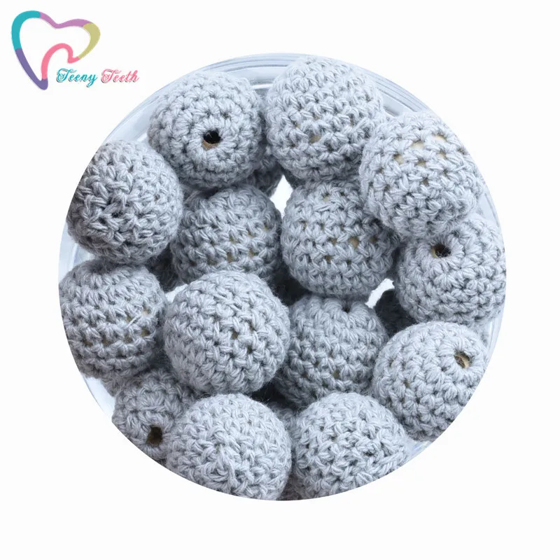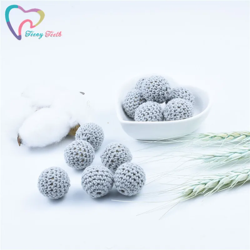 10 шт. серые круглые вязаные хлопковые деревянные шарики диаметром 16-20 мм для украшения своими руками, детские украшения Прорезыватель для зубов, ожерелье, игрушка