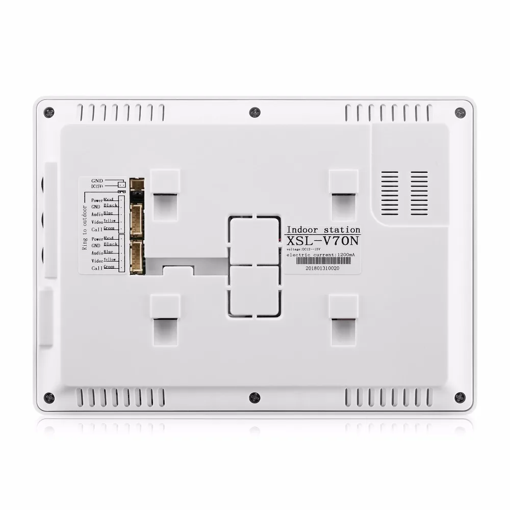 Модный дизайн7 дюймов TFT дисплей, волочения проволоки акриловый чехол, тонкий дизайн.Двусторонний Интерком, видео и аудио чатПоддержка передачи вызовов между монитором и дверным звонком, или монитор с другим монитором в другой комнате, внизу или наверху.Дневное/ночное видениеСветодиодный ИК офсетное освещение может получить лучший вечерний просмотр, ИК-датчик автоматически переключается на работу днем или ночью.Подходит для всех электронных замковВнутренний монитор:1. Кнопка монитора: 7 дюймов TFT ЖК-дисплей2. Разрешение: 320X2404. Режим внутренней связи: двойной Интерком без рук5. Продолжительность разговора: 120s6. Ключ датчика: Да7. Потребляемая мощность: 400 мА макс8. Источник питания: DC12V9. Размер: 170x120x20.5мм10. Материал: акриловый чехол для волочения проволокиНаружная Камера:1. Датчик камеры: 1/3 "HD CMOS2. Определение: 1200TVL3. Объектив: 3,6 мм мегапиксельная4. Угол обзора: 68 градусов5. Светодиоды для ночного видения: ИК-светодиоды6. Уровень водонепроницаемости: IP657. Размер: 122x41x23мм8. Материал: алюминиевый сплав
