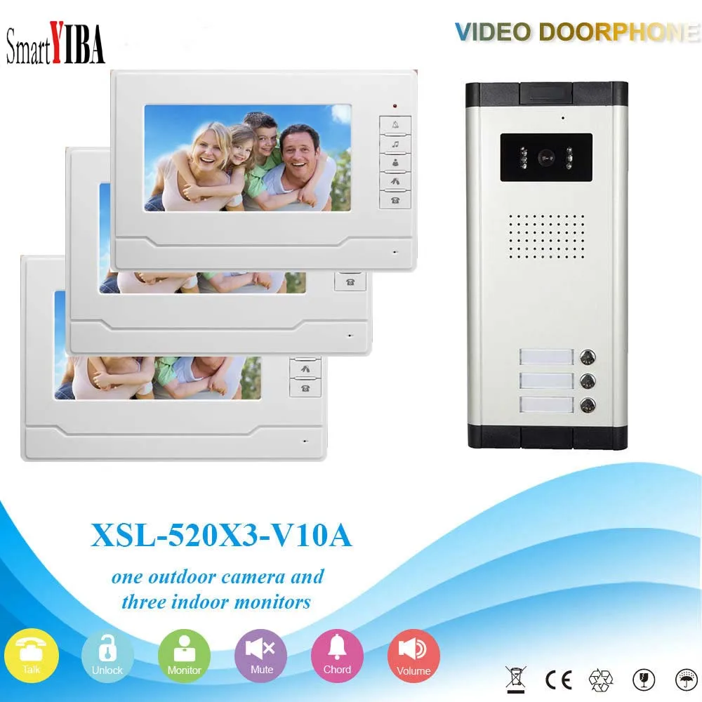 Видеодомофон SmartYIBA, 7 дюймов, проводной, цветной, 3 монитора + 1 ИК-камера