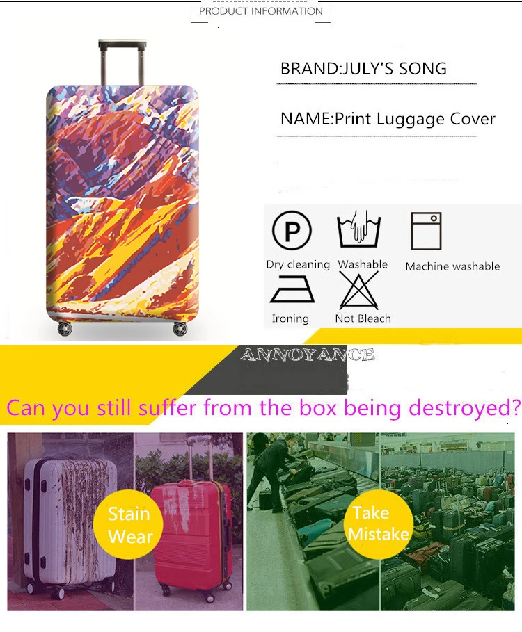 Чехол для костюма JULY'S SONG, эластичный чехол для защитный чехол на чемодан, аксессуары для путешествий размером 18-32 дюйма, чехол для костюма тележки