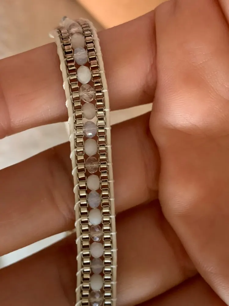 Красивый браслет. Вы можете сказать, что он имеет качество. Отделка идеальна. Она элегантная и красивая. Не выглядит сладким картофелем. Я буду покупать снова без колебаний. Быстрая доставка и хорошая упаковка.