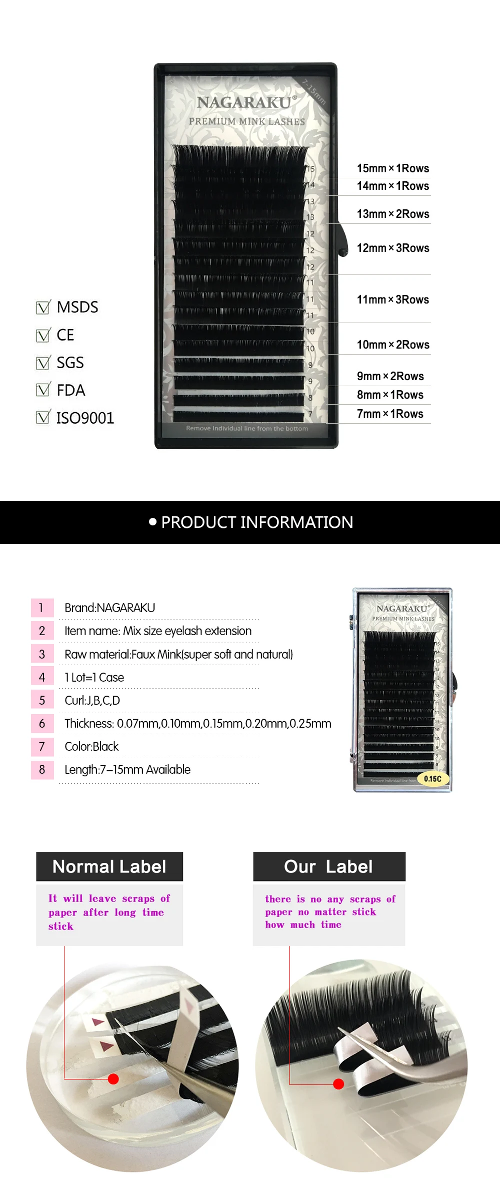 Ресницы для наращивания NAGARAKU, 16 рядовупаковка, 15 упаковокнабор