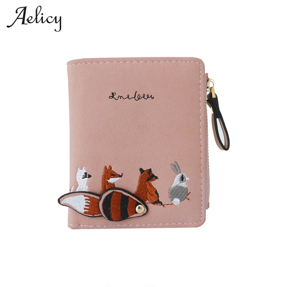 Aelicy Новый Модный женский кошелек с милыми мультяшными животными, короткий кожаный женский маленький кошелек на молнии с отделением для карт для девочек
