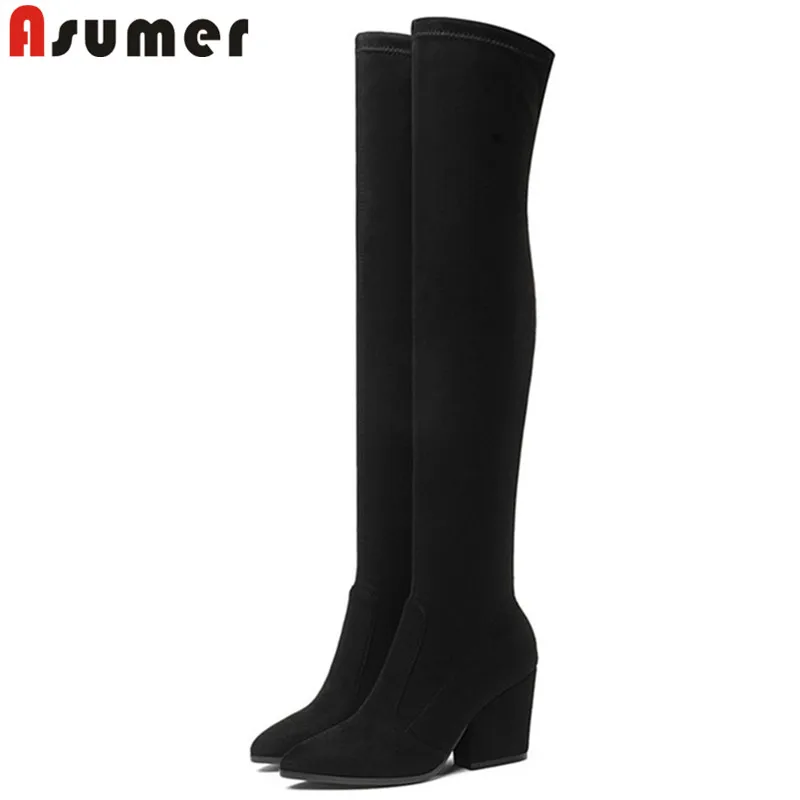 Женские ботфорты ASUMER, из замши, на высоком каблуке, размеры 34-43, Осень-зима