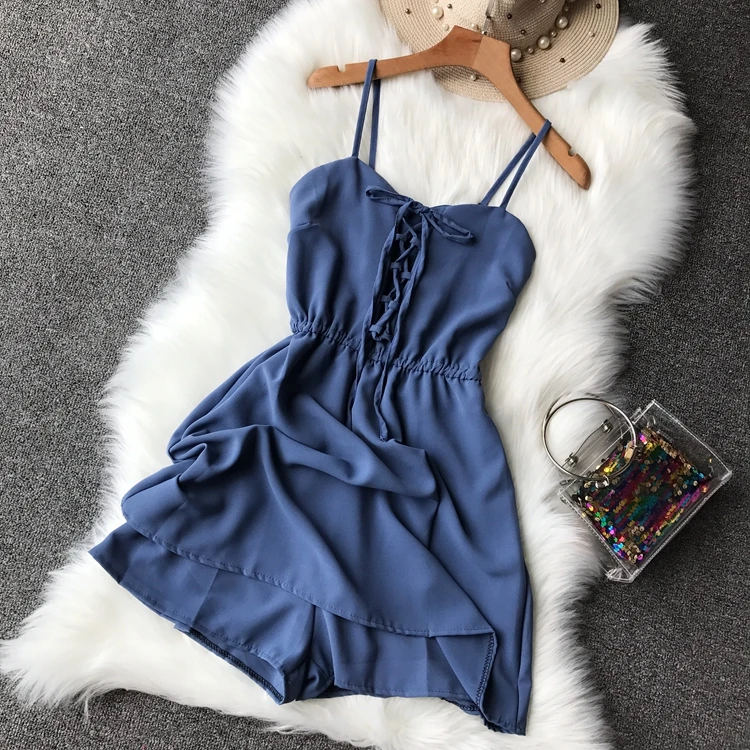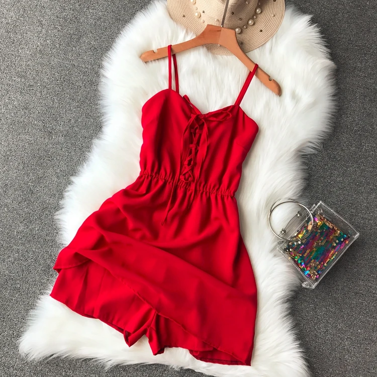 Женский комбинезон на бретельках ALPHALMODA, Однотонный Регулируемый Повседневный джемпер на шнуровке с широкими штанинами и высокой талией