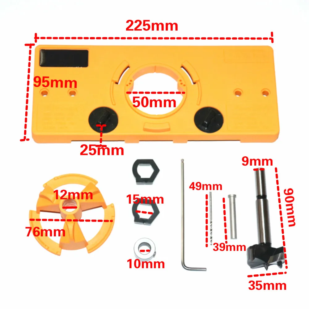 Скрытый шарнирный джиг подходит для петель отверстие распиловки до 35 мм.