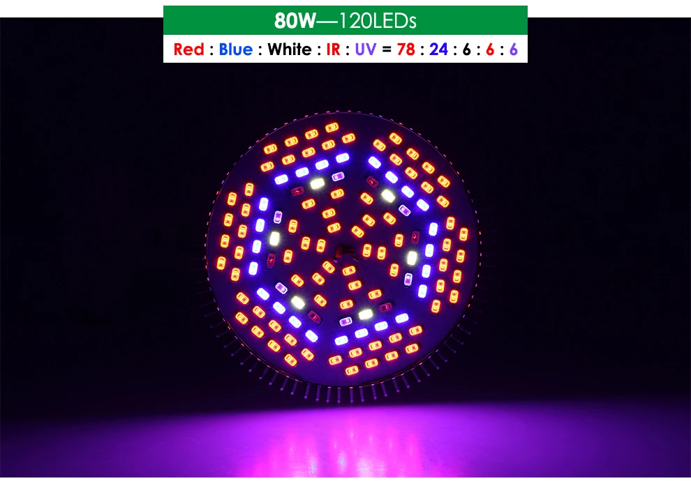 Светодиодный светильник для выращивания, полный спектр 10 Вт 30 Вт 50 Вт 80 Вт E27, светодиодный светильник для выращивания цветов в помещении, светодиодный светильник для выращивания растений