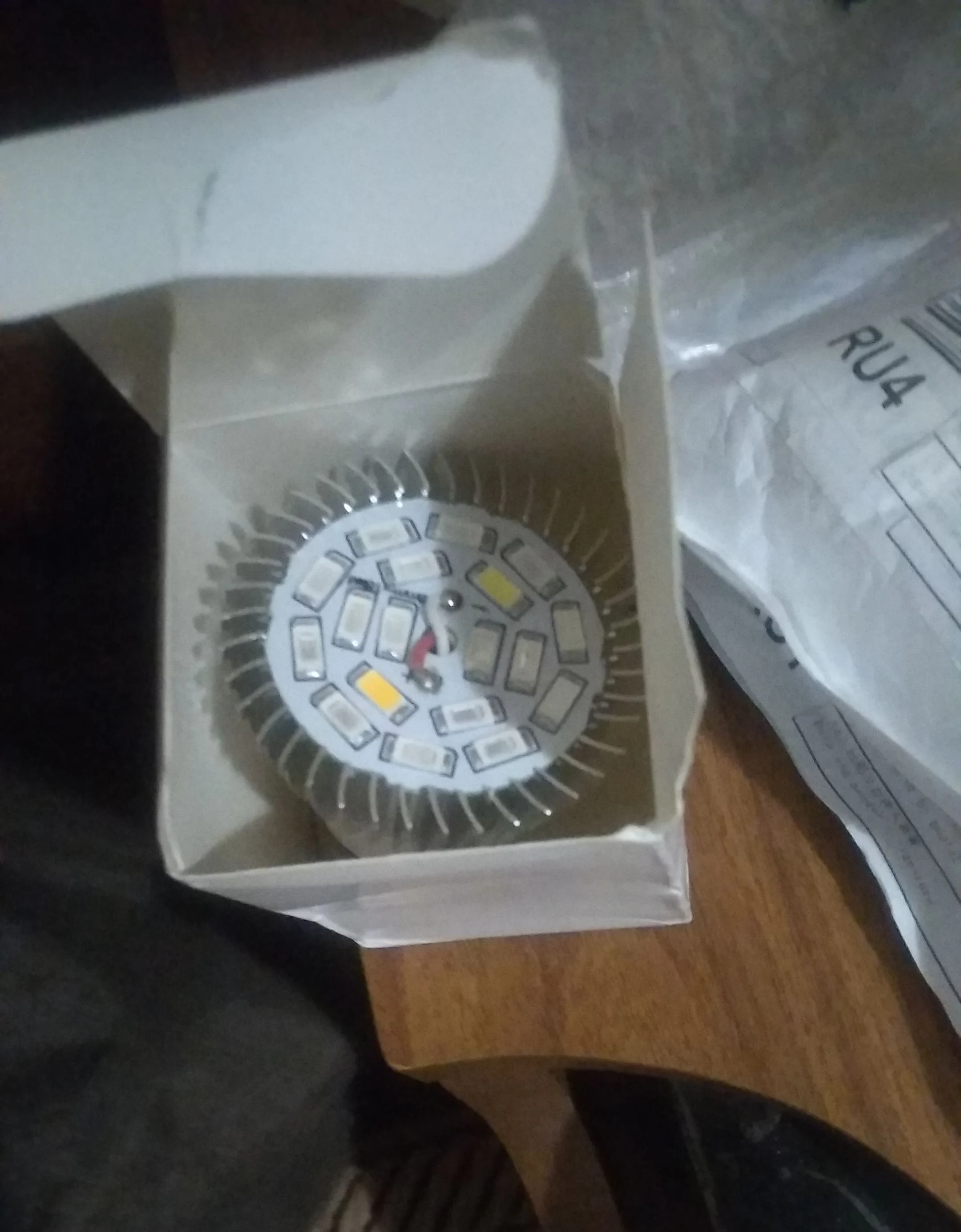 Всё как в описании, коробка пришла очень мятая и побитая, но светодиоды работают. Долгая отправка, но сама доставка быстрая, в постамат. Освещенность от 6-ваттной лампочки чуть больше 300 лк. Не очень много, но для досветки одного растения достаточно.