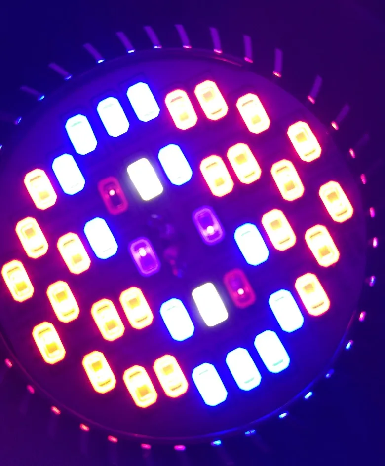 Достойные лампы. На цоколе защитный колпачок. Красные и синие светики, и по одному тёплый белый, и холодный. Греются терпимо. Я полностью удовлетворён. Описание соответствует что я увидел, спасибо, отличный магазин, моментальная отправка в день заказа и меньше недели от отправки до получения! Спасибо!