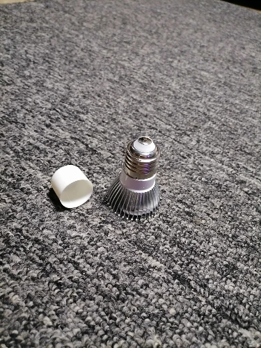 Одна из ламп приехала с погнутым радиатором охлаждения и сломанным защитным колпачком. Упаковка не соответствует сохранности товара. Посмотрим как это скажется на работе лампы. С первого включения лампа работает.