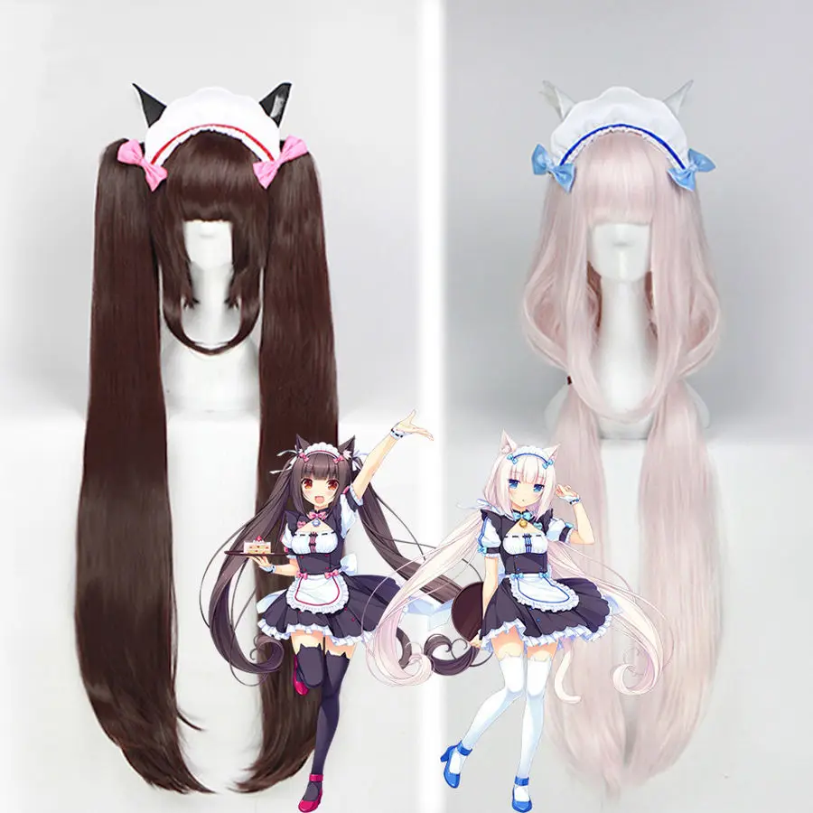 NEKOPARA Chocolat ванильный каваи длинные хвосты коричневый розовый косплей парик уши хвост