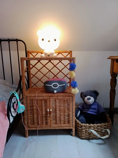Именно то, что я хотел: Проводная забавная лампа для ребенка, чтобы использовать в качестве ночного освещения. Также вы можете поставить лампу, которую вы хотите. Имейте в виду, что лампа, которая поставляется с лампой, не является светодиодной лампой (по крайней мере, мой блок), но вы можете поместить другой.