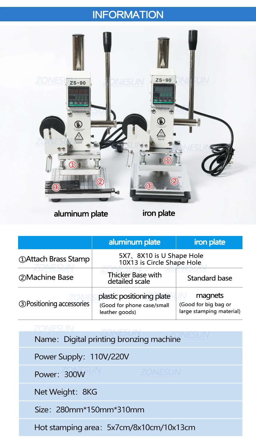 Термопресс ZONESUN 10x13 с держателем ZS90, ручной станок для тиснения ПВХ, бумаги, кожи, фольги, бронзового тиснения