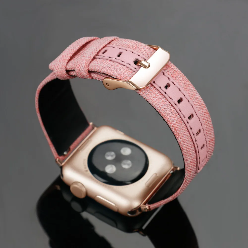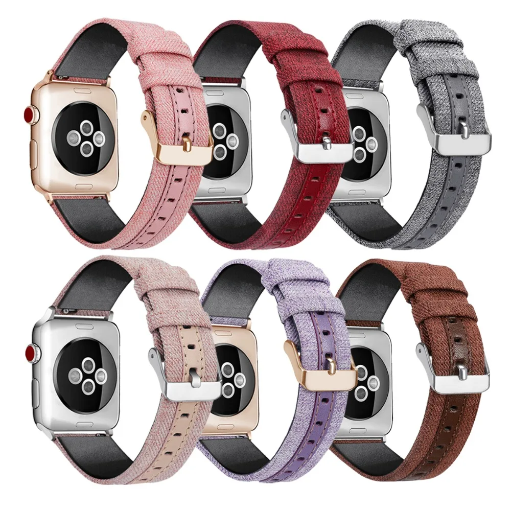 Кожаный ремешок для Apple watch 6 band 40 мм 44 мм, браслет для iWatch Band 38 мм 42 мм, кожаный + холщовый, для Apple watch series 3 4 5 se 6
