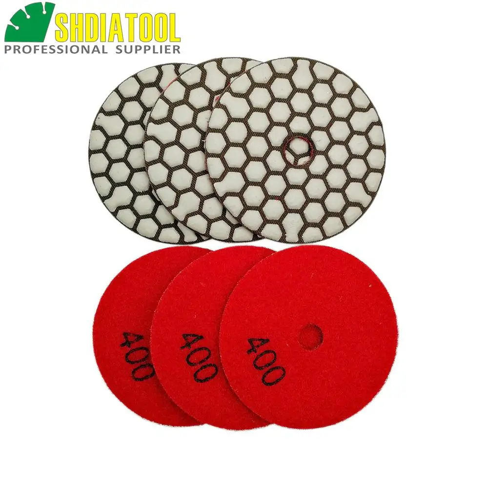 SHDIATOOL 6 шт 80 мм #400 полимерные скрепки гибкие алмазные сухие полировочные колодки гранитные мраморные керамические шлифовальные диски 3 дюйма шлифовальный диск