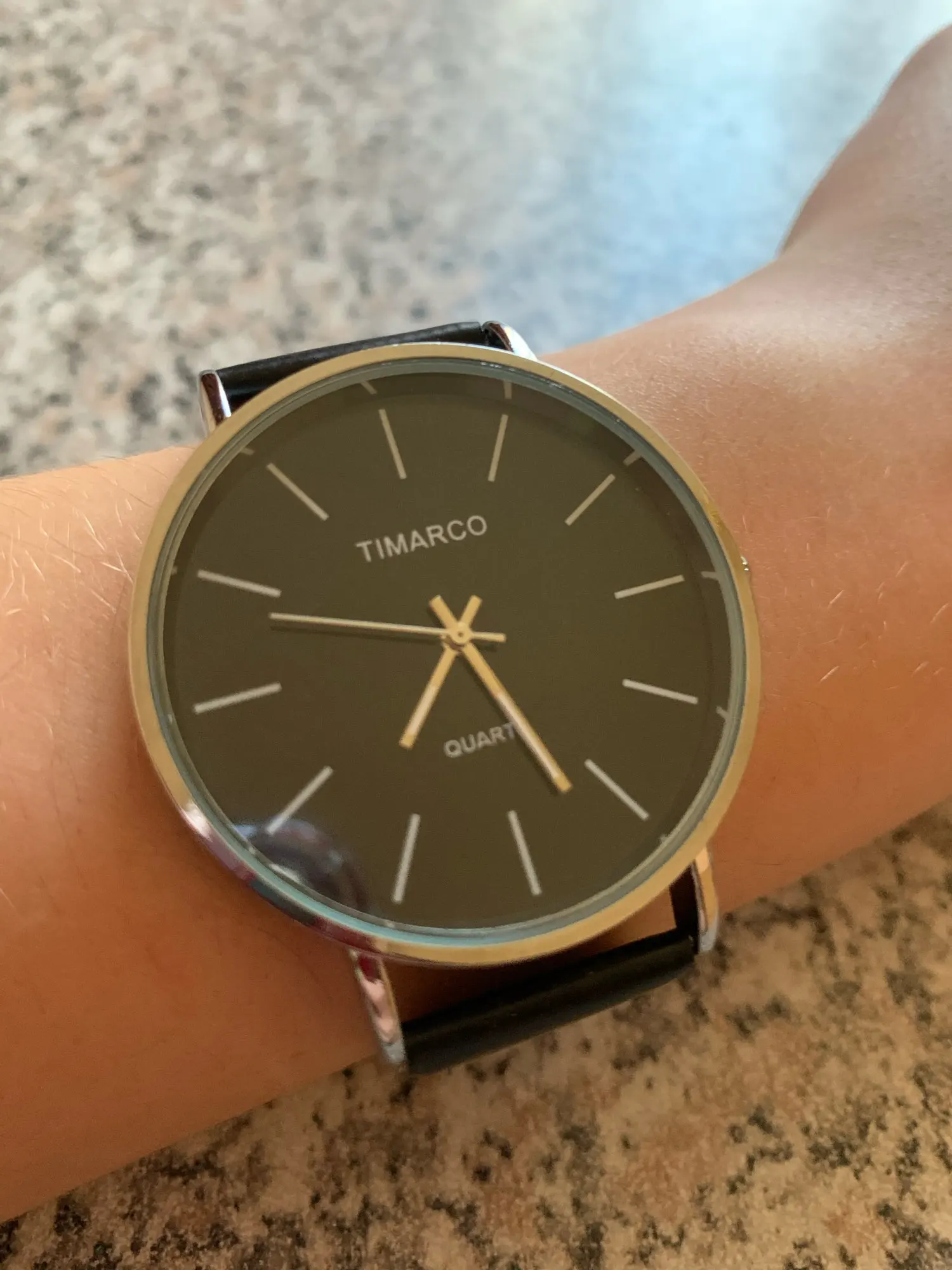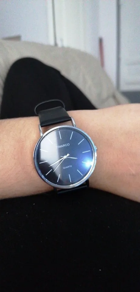 За эту цену, это действительно круто. Мне нравится, что часы большие, но ремешок необычный на ощупь, я надеюсь, что он не трескается или что-то еще, потому что он кажется действительно синтетическим. В любом случае, товар хороший, и он прибыл быстро. У меня узкое запястье, поэтому я должен сделать Дополнительное отверстие, но это не проблема.
