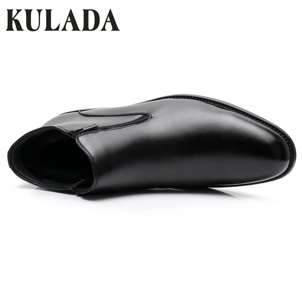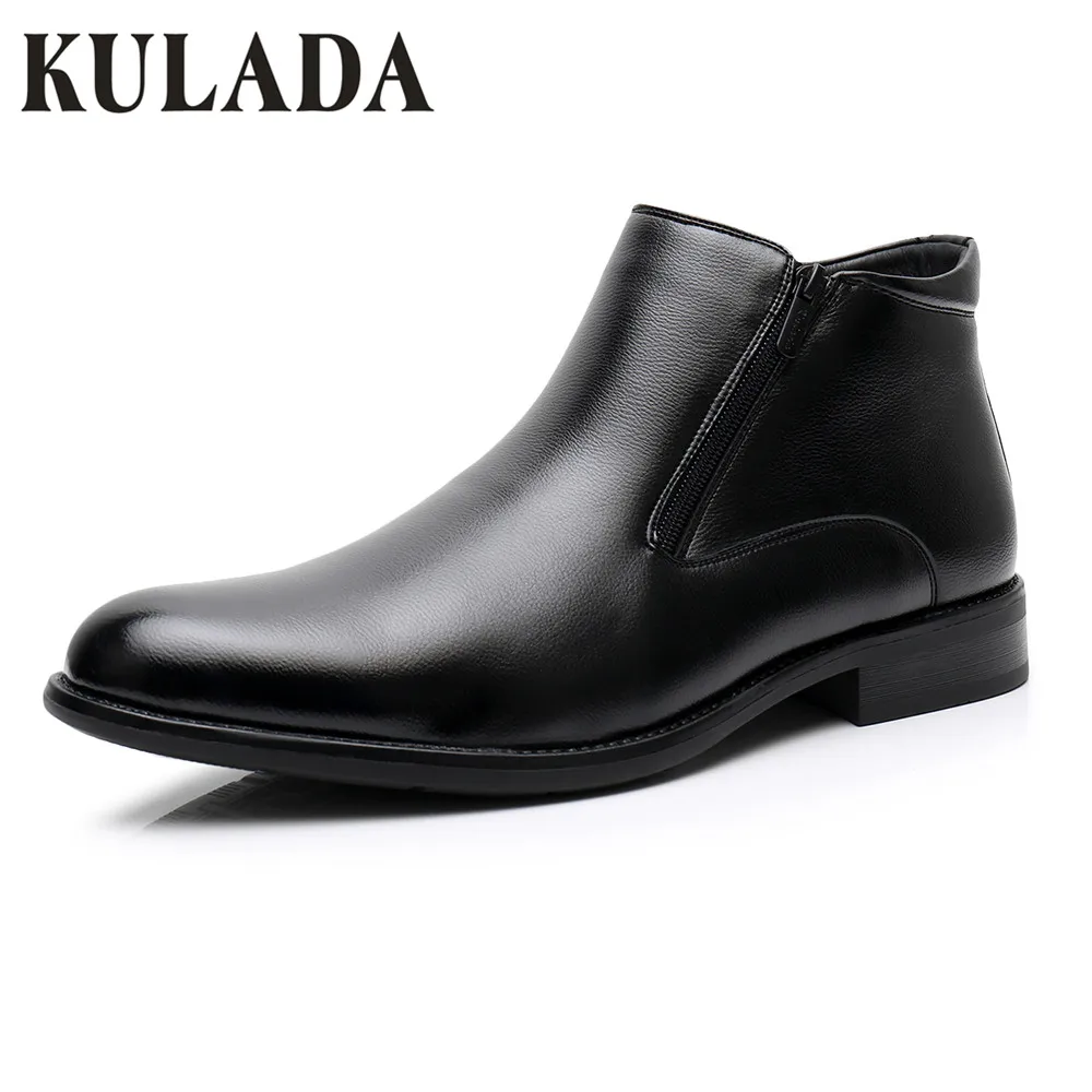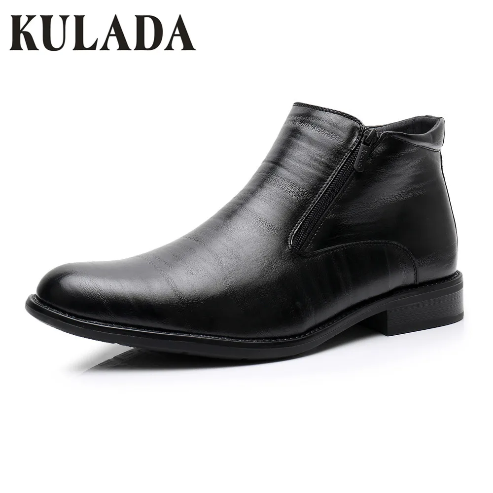 Мужские кожаные ботинки KULADA, коричневые теплые зимние ботинки с двухсторонней молнией и толстым мехом, большие размеры, 0924-1, зима 2019