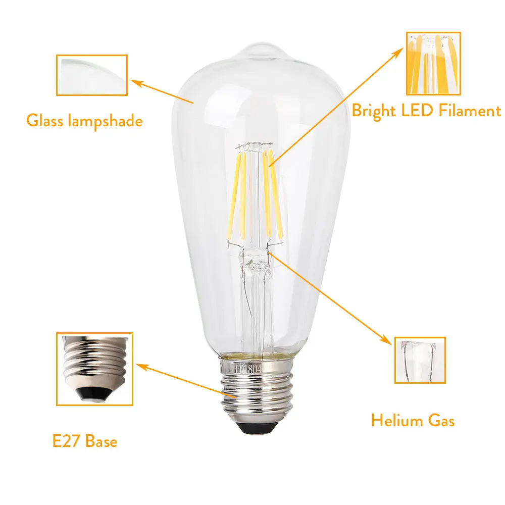 ST64 диммируемая Светодиодная лампа Эдисона Особенности: