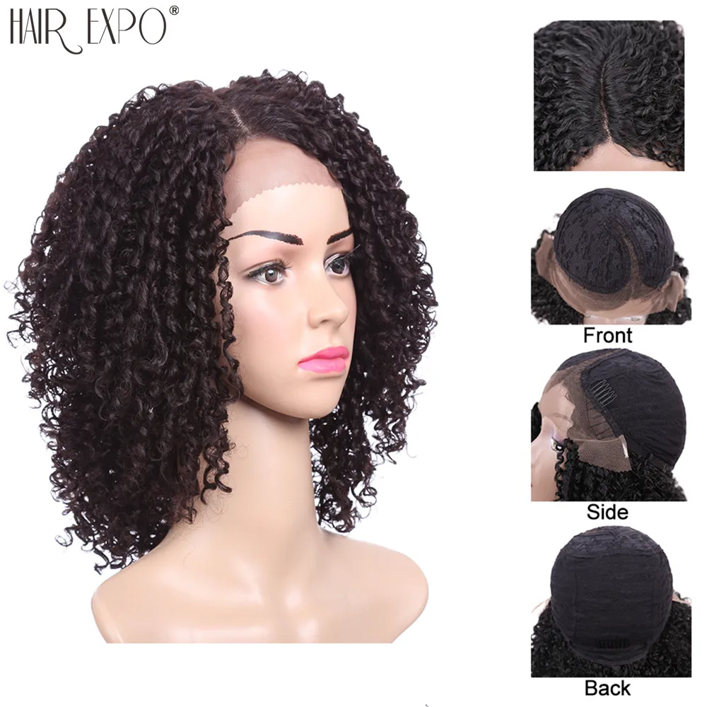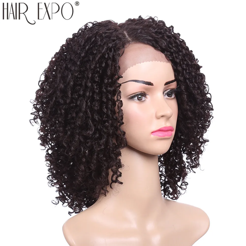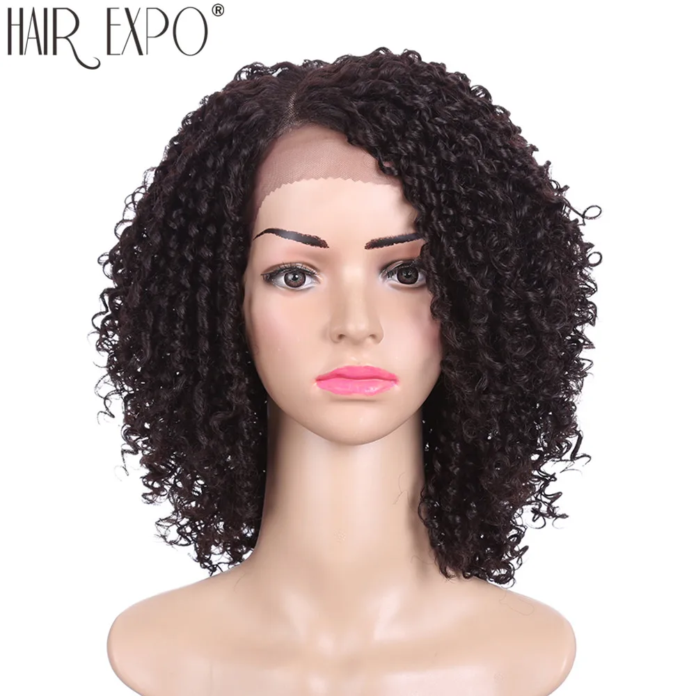 Парик с кудрявыми кружевами 14 дюймов, синтетические короткие черные волосы для чернокожих женщин, термостойкие, с боковой частью, город Expo