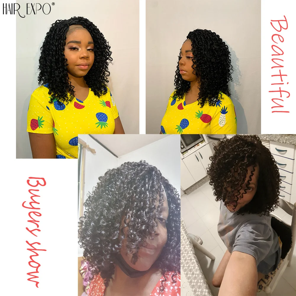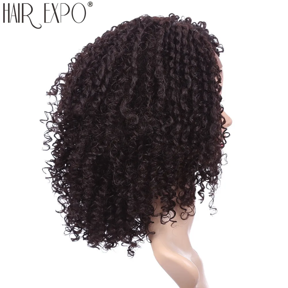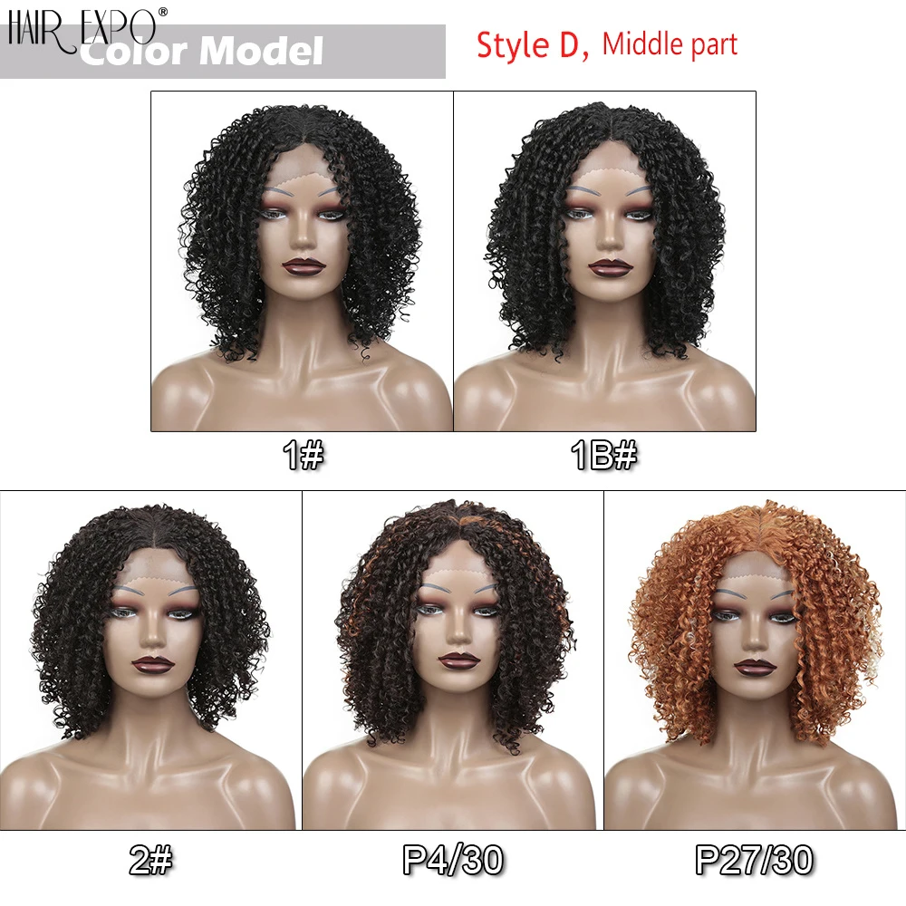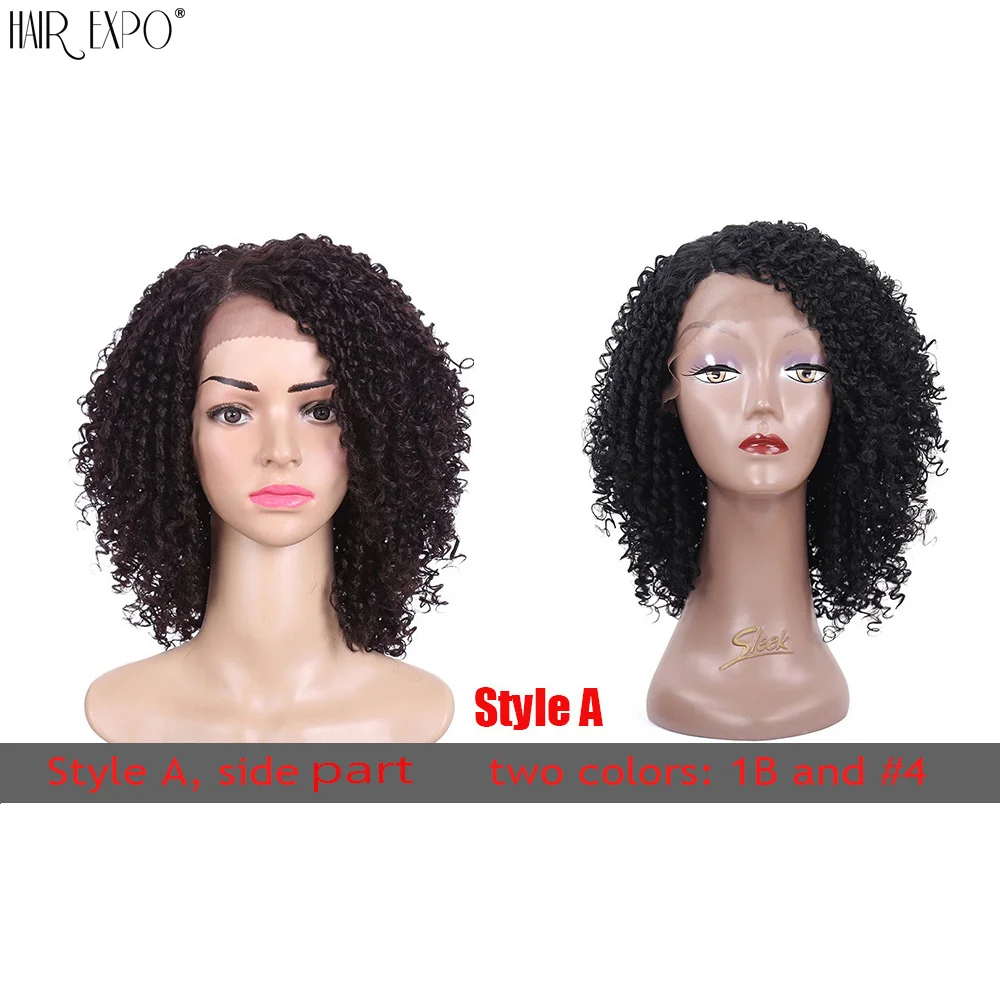 Парик с кудрявыми кружевами 14 дюймов, синтетические короткие черные волосы для чернокожих женщин, термостойкие, с боковой частью, город Expo