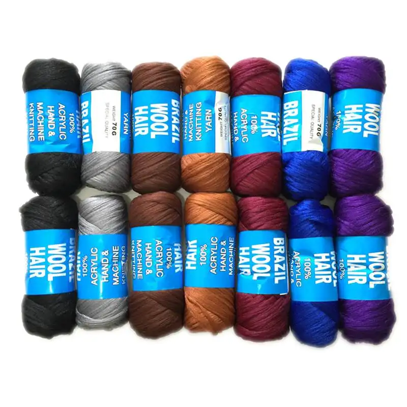 Бразильские шерстяные волосы низкой температуры слава-огнестойкое синтетическое волокно для плетения1.100% акриловая пряжа для ручного и машинного вязания.2 светильник вес легко смешивается с человеческими волосами, выглядит точно как натуральные волосы.3. С ним можно плавать, можно стирать и использовать повторно, он блестящий, а также красиво выглядит на детских волосах.4. Отлично подходит для сенегальских скручиваний, обертываний, кос и искусственных местоположений, страстного скручивания.5. Хороший простой способ защитить волосы и отлично подходит для любого проекта «сделай сам»
