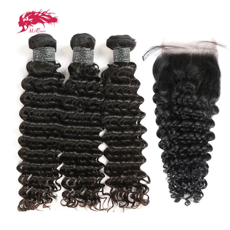 Волнистые волосы Ali Queen 34 шт., перуанские человеческие волосы с глубокой кутикулой, пучок с застежкой, свободная деталь, тройной пучок s с застежкой 4x4