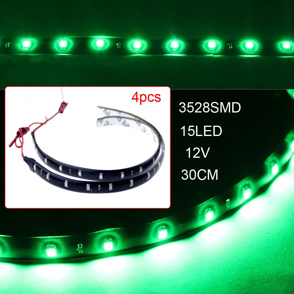 4 шт 12V 30 см 15LED 3528SMD Водонепроницаемый авто гибкие светодиодные полосы света
