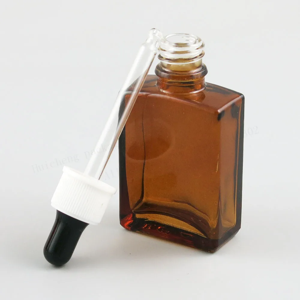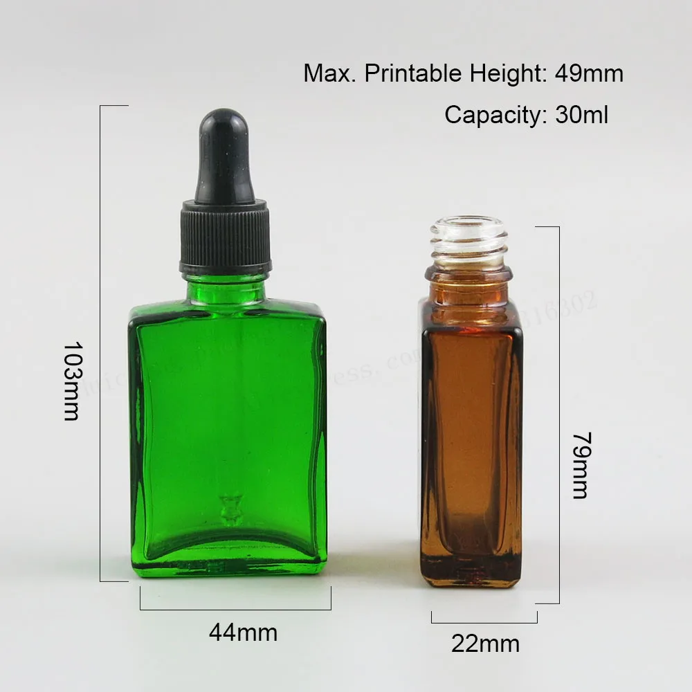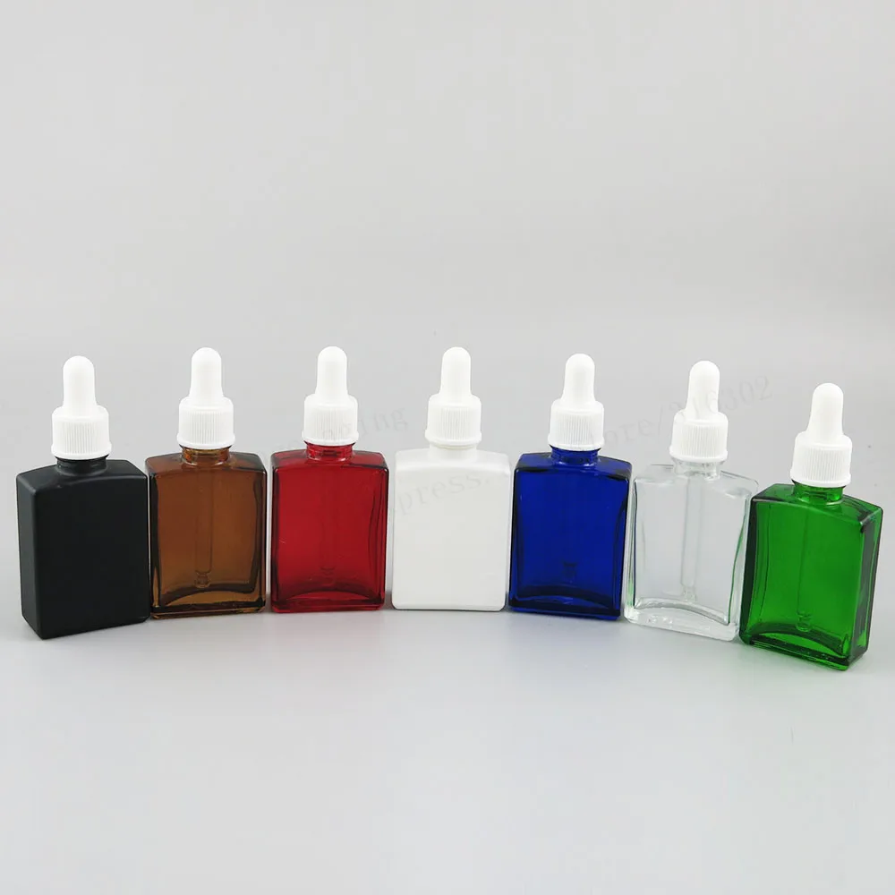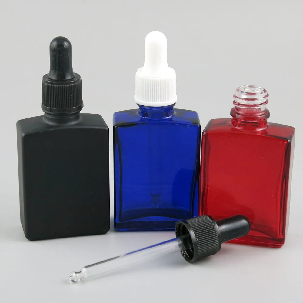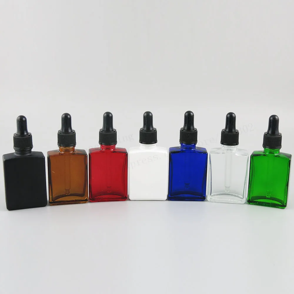 Квадратный плоский стеклянный контейнер 12x30 мл с черной пипеткой, 1 унция, черный, белый, прозрачный, синий стеклянный контейнер для жидкости, 30 мл