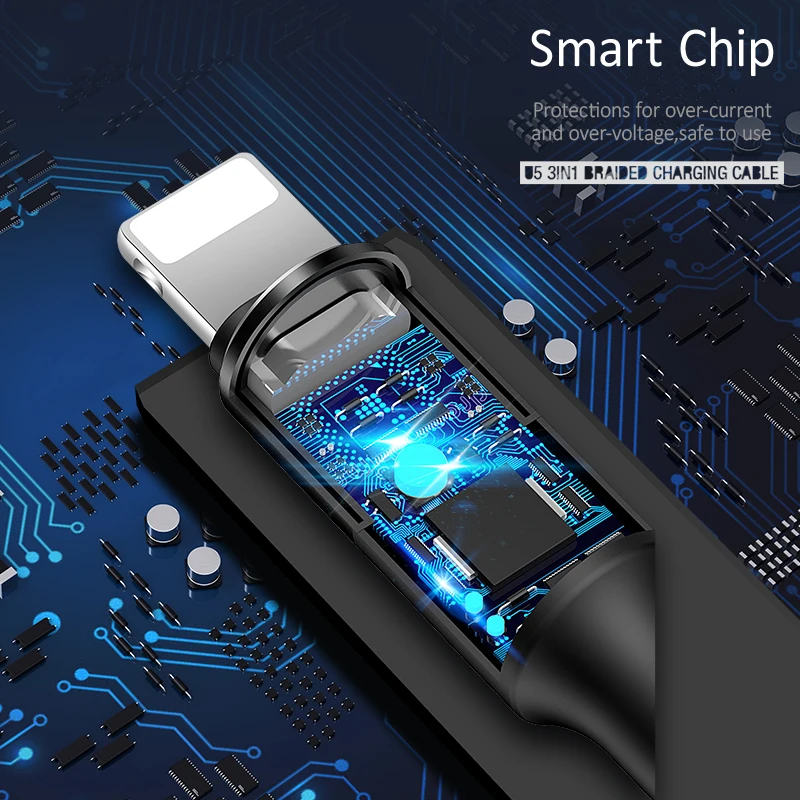 USAMS 3 в 1 USB кабель type C Micro USB для iphone 5 6 7 8 ipad Зарядка samsung Galaxy S6 S4 Oneplus кабель для передачи данных для мобильного телефона для iOS 12 11 10 9