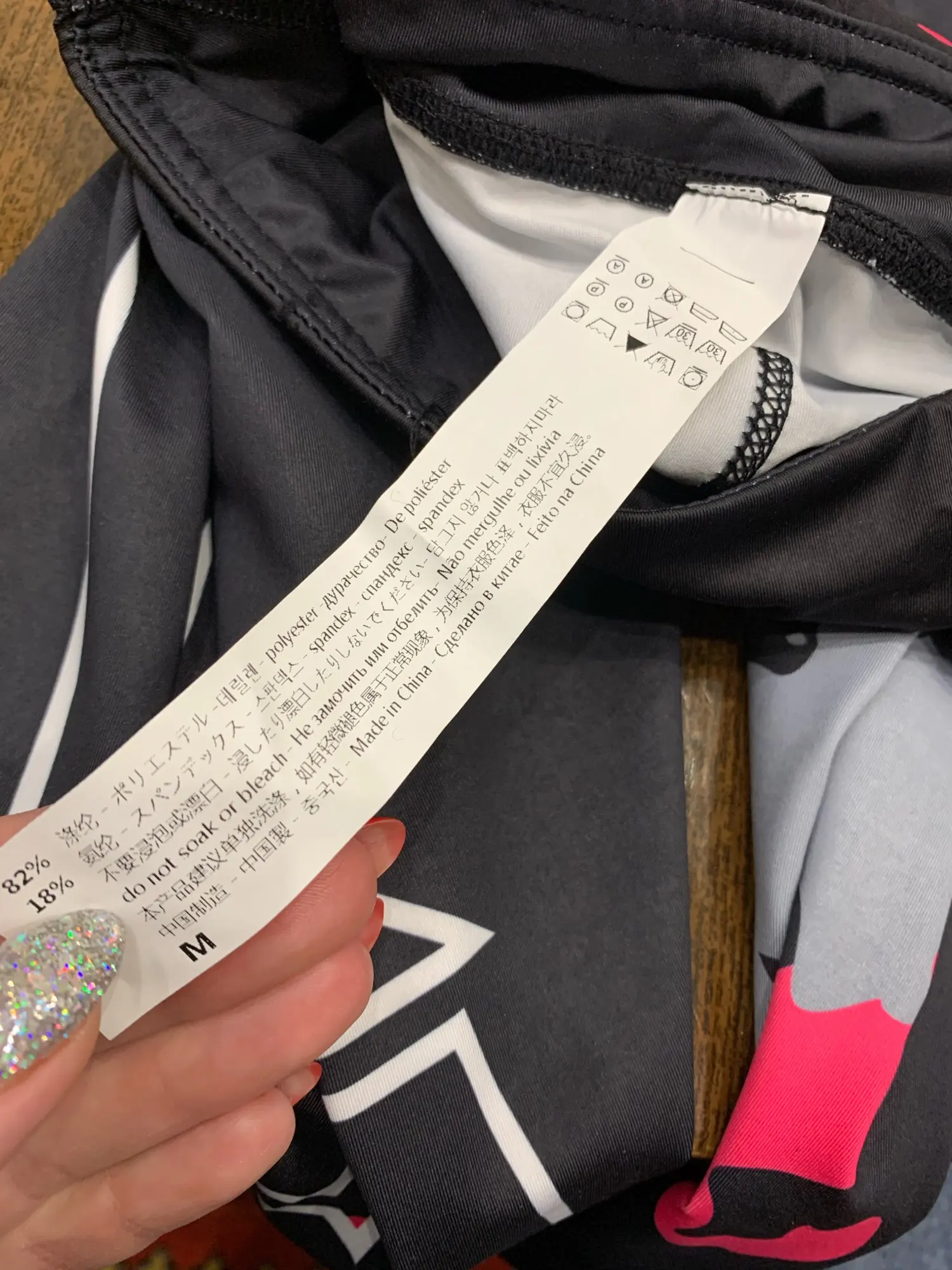 Супер быстрая доставка в Испанию в течение 10 дней. Ткань из лайкры высокого качества. Очень удобный, для размера 36-38, размер M хороший. Цвета и рисунки соответствуют