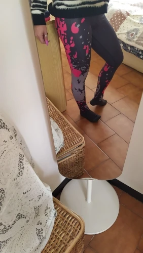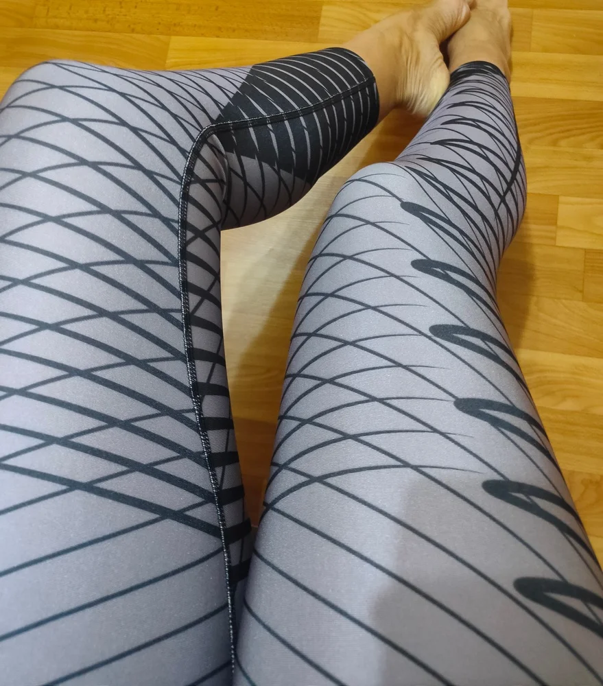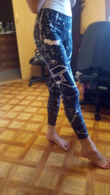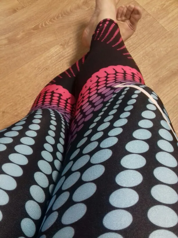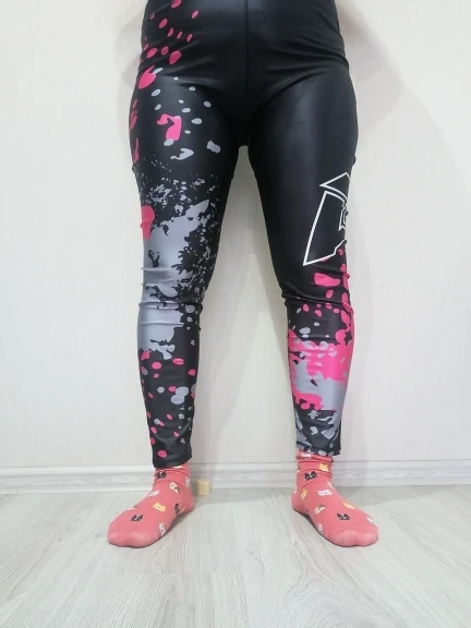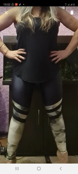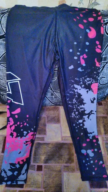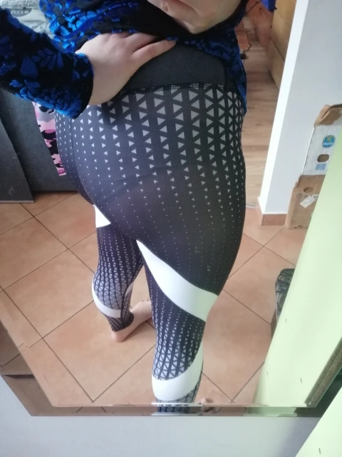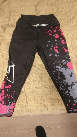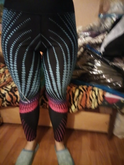 Доставка заняла 12 дней, упаковано в чёрный пакет, ну как всегда. Качество неплохое, рисунок яркий, ткань не тонкая, но и не плотная, не просвечивает, но и огрехи в фигуре не скорректирует, только подчеркнёт. На свой 52 размер я конечно же взяла XL, т.к. был опыт с размером L в который близко не вошла. Но! Вот я была в шоке, одев на себя эти легинсы, они мне большие! Они повисли как дедовские трикотаныповисли по всей площади, берите меньше! Тренила дома, удобные, приятные к телу, все норм, но только дома, в трикотанах только дома, чтобы никто не увиделбрала с хорошей скидкой, где-то в районе 300 рублей. Простите за не эстетичное фото, но что есть