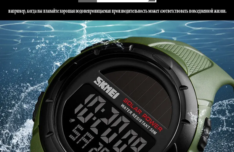 SKMEI Солнечный открытый спортивные часы мужские светящиеся 1224 часов цифровые часы Chrono 50 м водонепроницаемые часы Relogio Masculino 1405