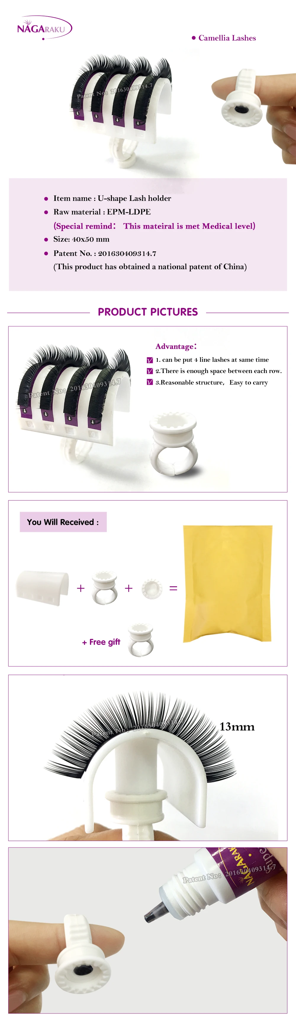 NAGARAKU клей-держатель для ресниц Макияж держатель ресниц 2 комплекта 2 u-образный держатель 2 клеевых кольца Регулируемый размер u-образный держатель ресниц