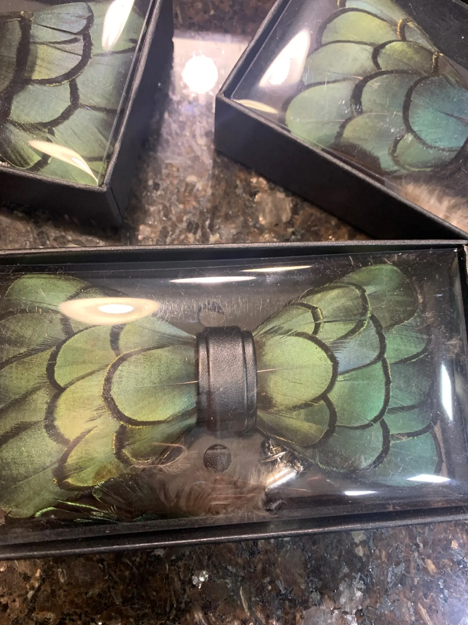 Супер галстук-бабочка Но перья посередине Довольно зеленые, чем желтые Но очень красиво