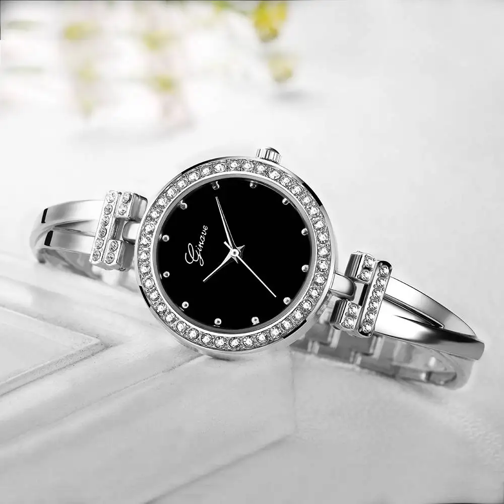 Часы женские кварцевые со стразами, Модный Элегантный комплект из 4 предметов, роскошные стальные, с серебристыми кристаллами, подарок