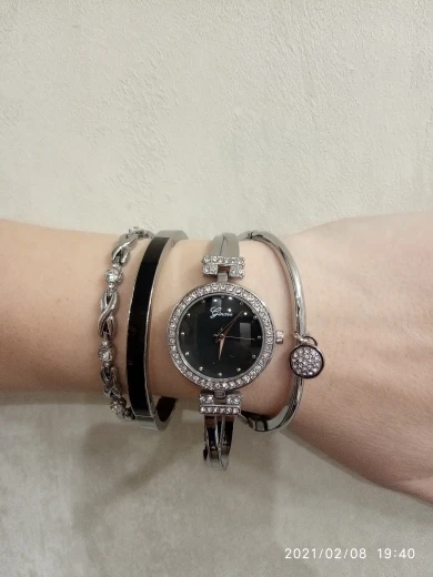качество товара совсем не соответствует цене. напыление ремешка непрочное, за полдня носки покрытие на ремешке стерлось и проступил желтый металл. браслеты сделаны некачественно, вынлядят дешево. большие проблемы с замками. на часах практически невозможно открыть замок. металл хрупкий, ремешок на часах на полную руку, весь болтается, похож на пластмассовый