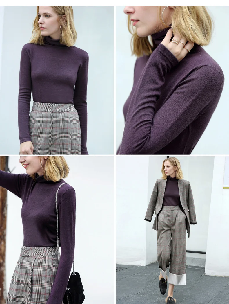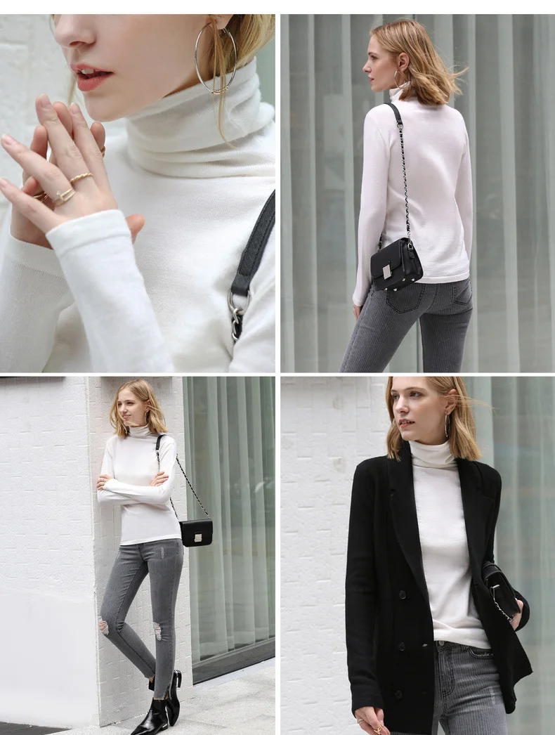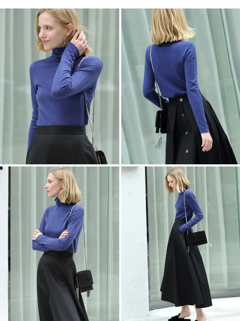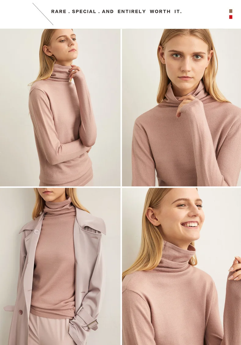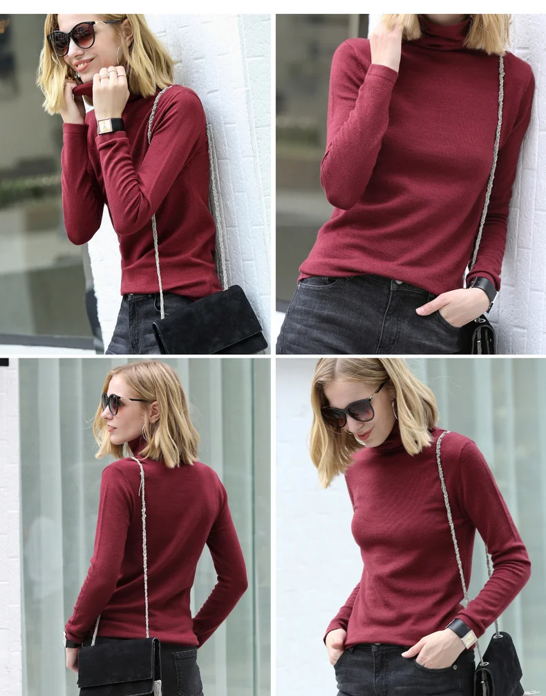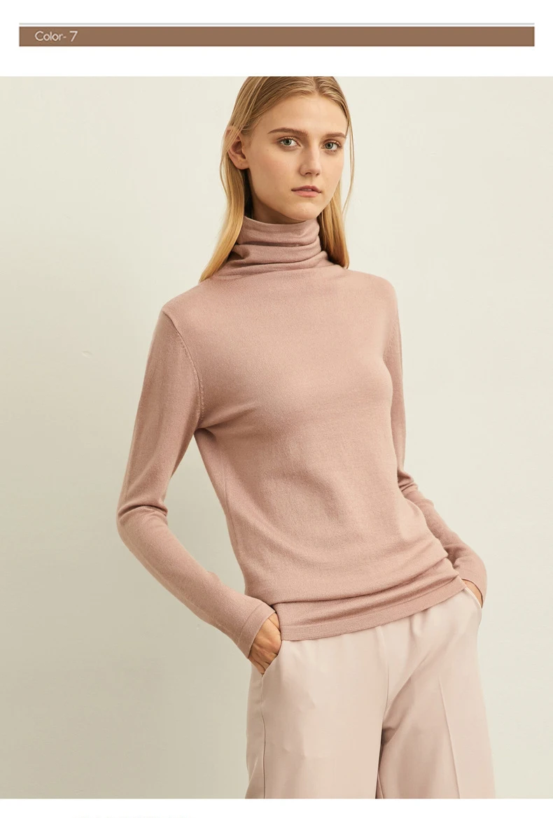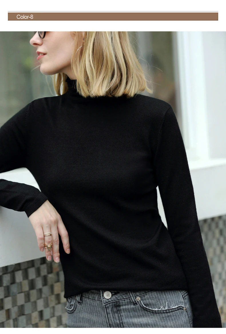 Свитер женский шерстяной, с высоким воротником, весна-зима, 11820098