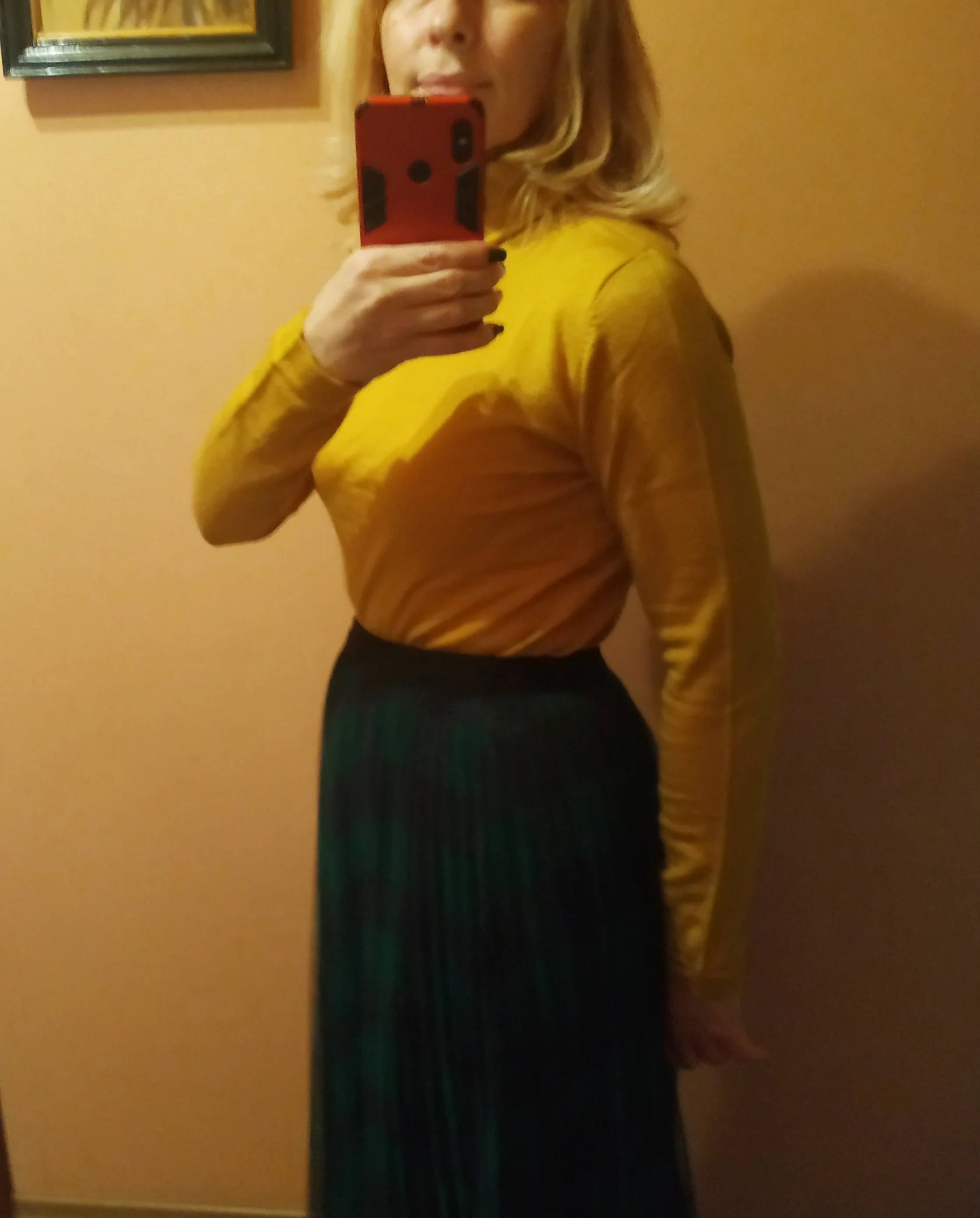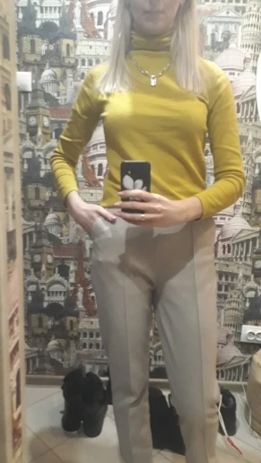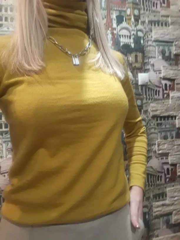 Очень теплая водолазка с шерстью, интересный горчичный цвет и крой ворота. Немного ошиблась с размером, можно было взять L или XL на 96-77-98