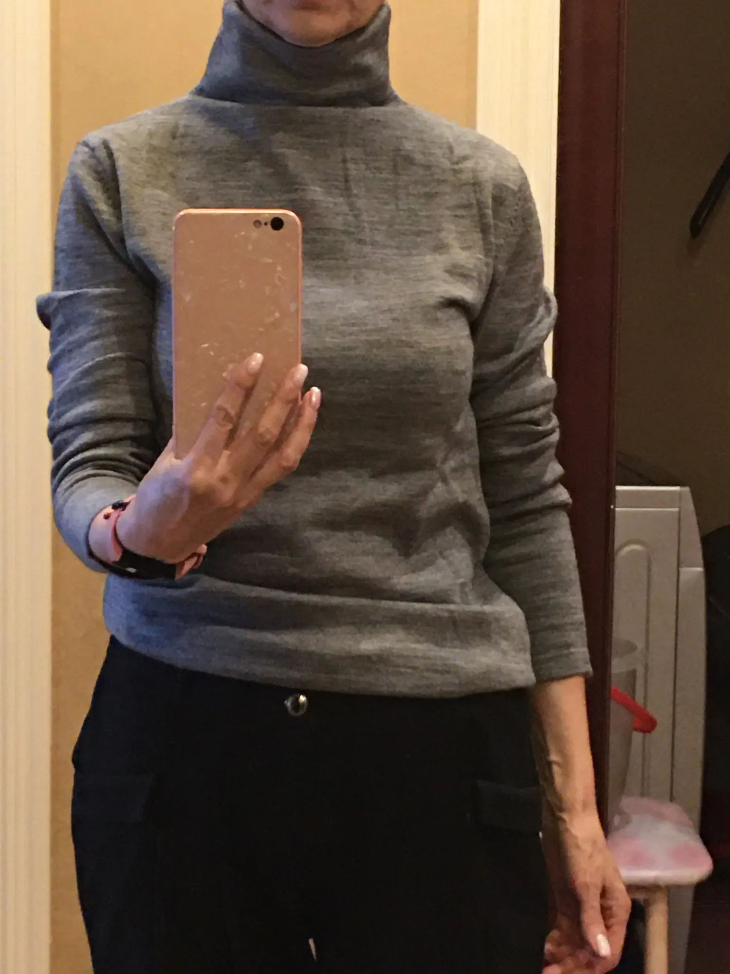 Отличная водолазка. Швы ровные, чуть колется когда надеваешь, потом привыкаешь. Мне как раз нравится такое свойство шерсти. Размер XS на рост 165 и вес 47 подошёл. Длина рукавов в самый раз. Маленький нюанс заметила как получила – горловина сплошная. Поэтому чуть собирается в складку. Пришёл заказ через 2 недели в пятерочку. В фирменном пакете со всеми бирками. Спасибо @_gravitsappa_ за наводку и продавцу за хороший товар.